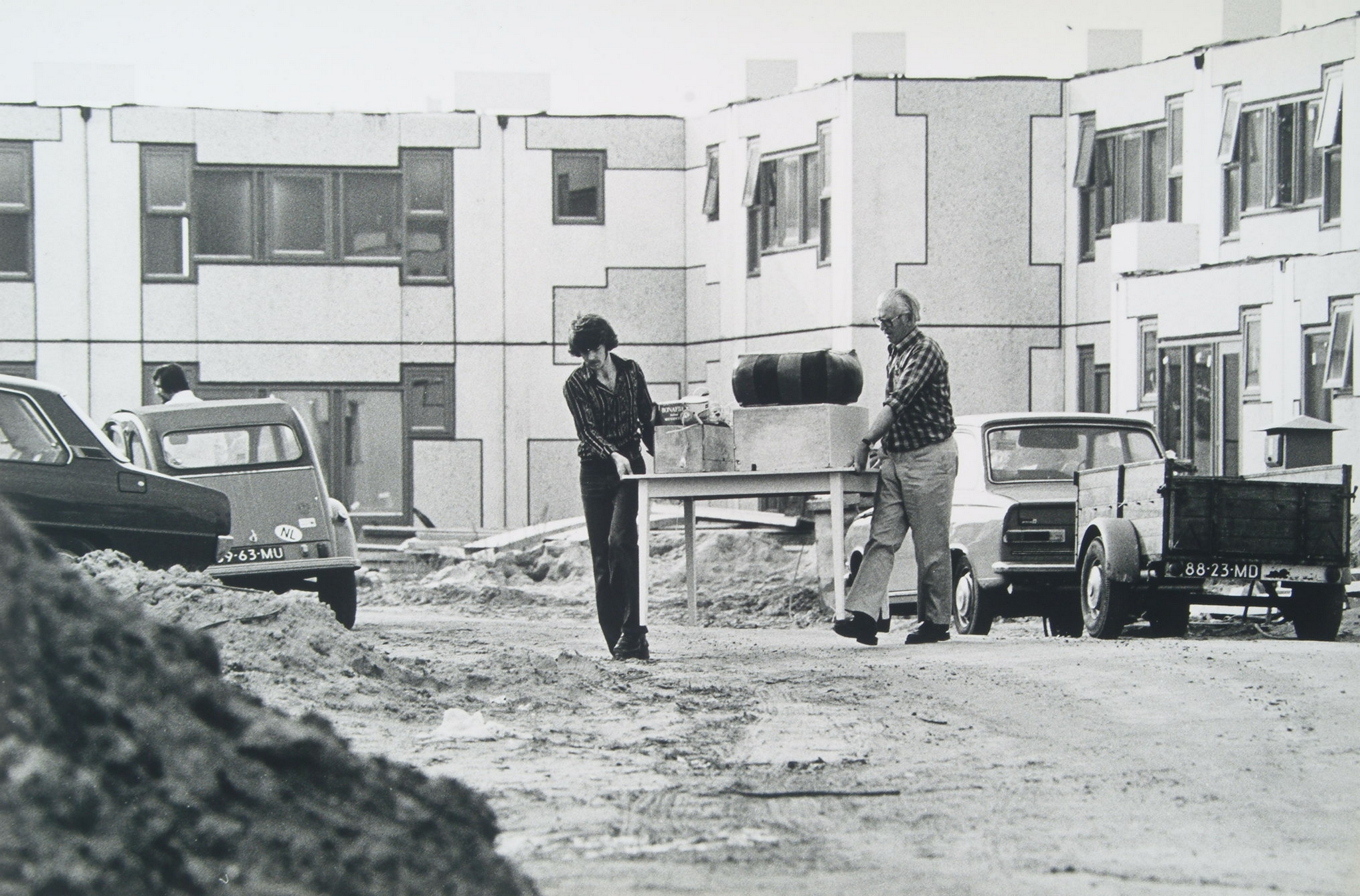 Mensen verhuizen huisraad naar hun nieuwe woning in "Legoland" in de wijk Sterrenburg