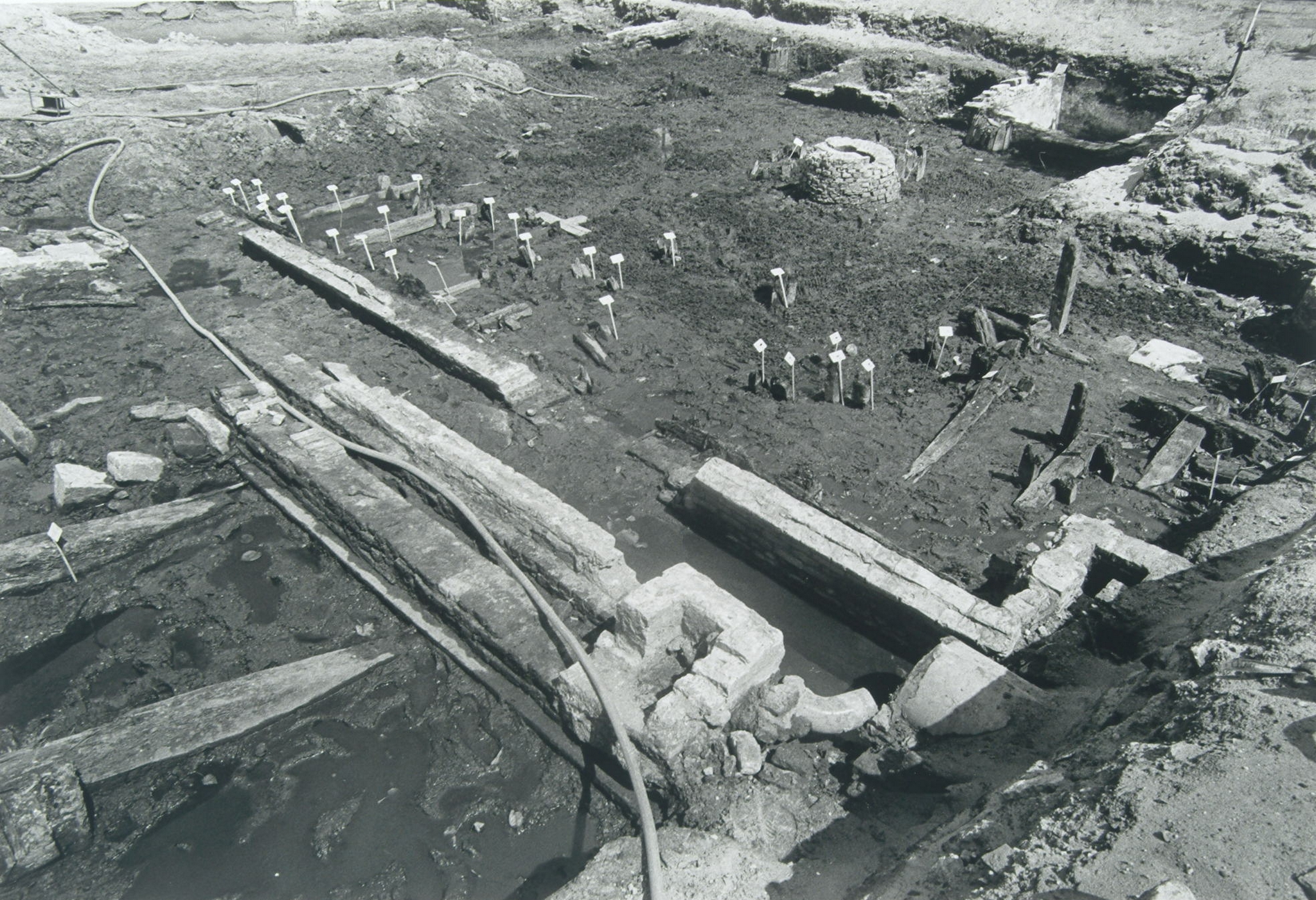 - Archeologische opgraving van de fundamenten van het huis Scharlaken aan de Waag
