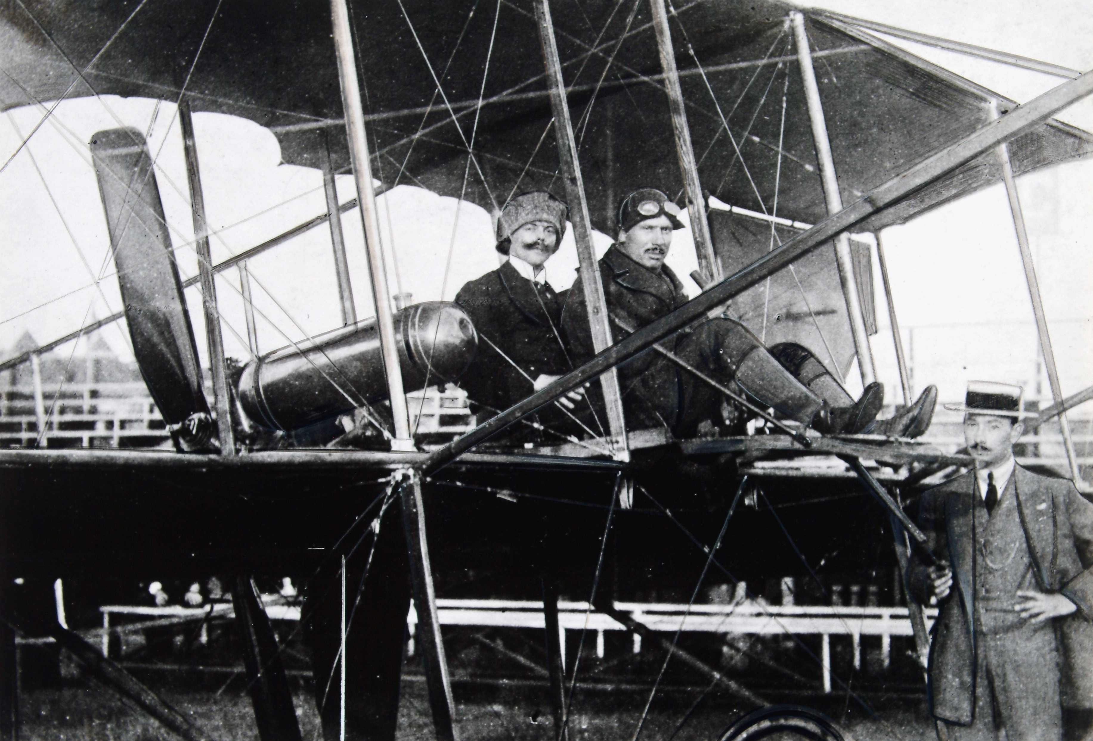 - Vliegweek mei 1911 op het DFC-terrein. De Dordtse passagier E. v.d.Matten (links) rechts Mulder, de aviateur.