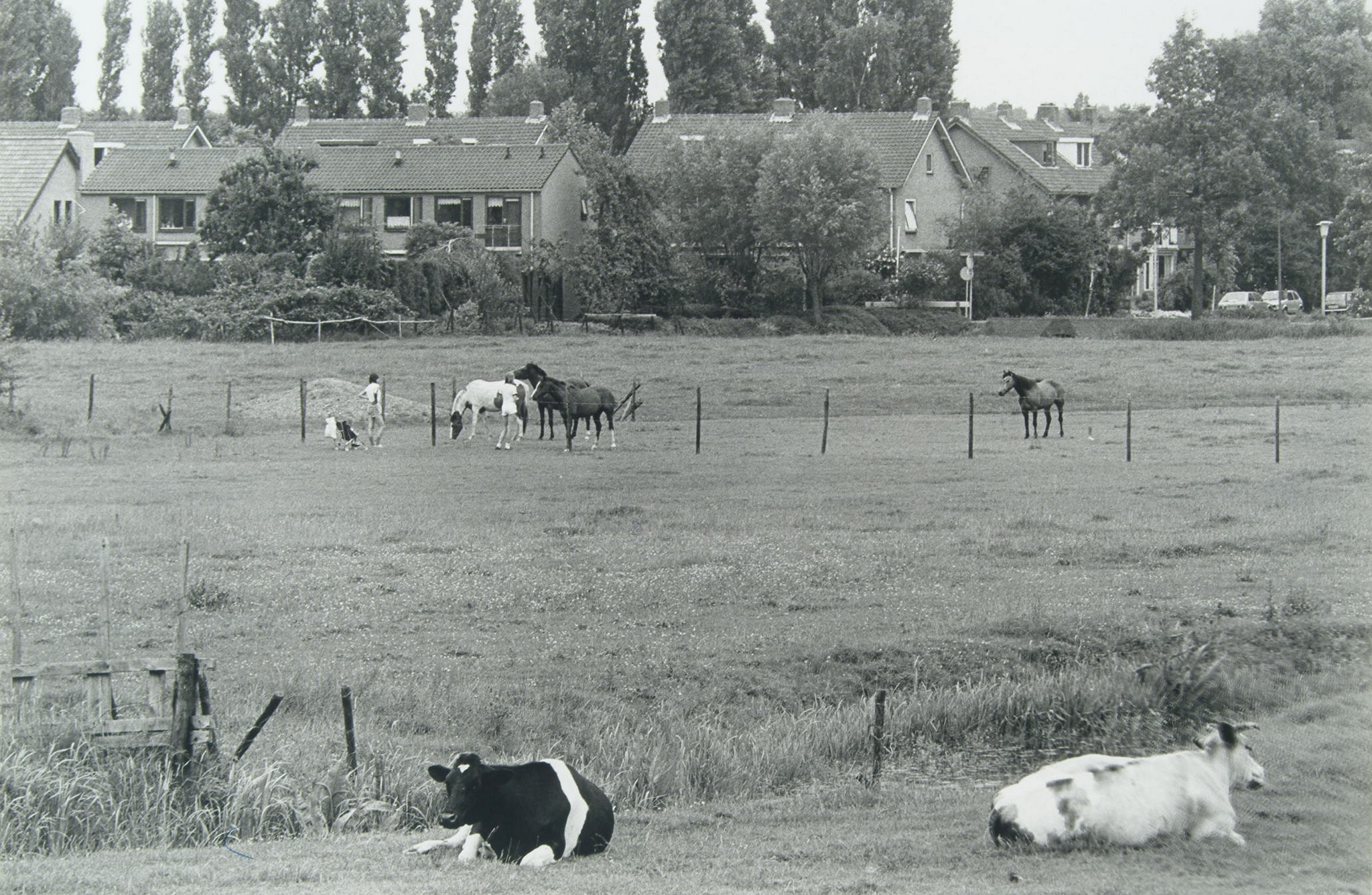 - Weiland met paarden en koeien bij de nieuwbouwhuizen aan de Heysterbachstraat Twintighoevenweg