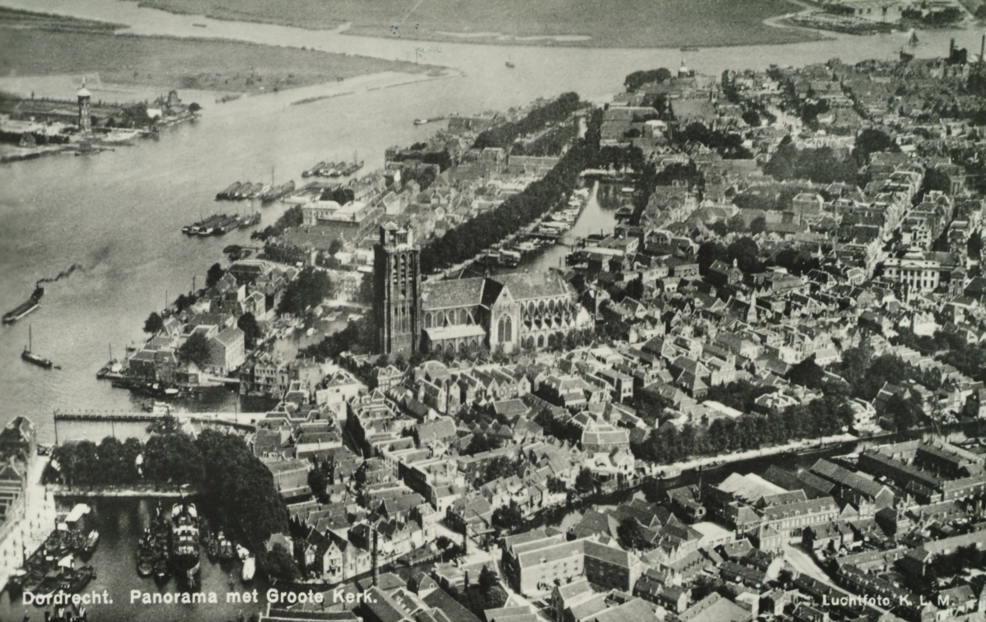 - Luchtfoto Grote Kerk, Oude Maas, Merwede en Noord.