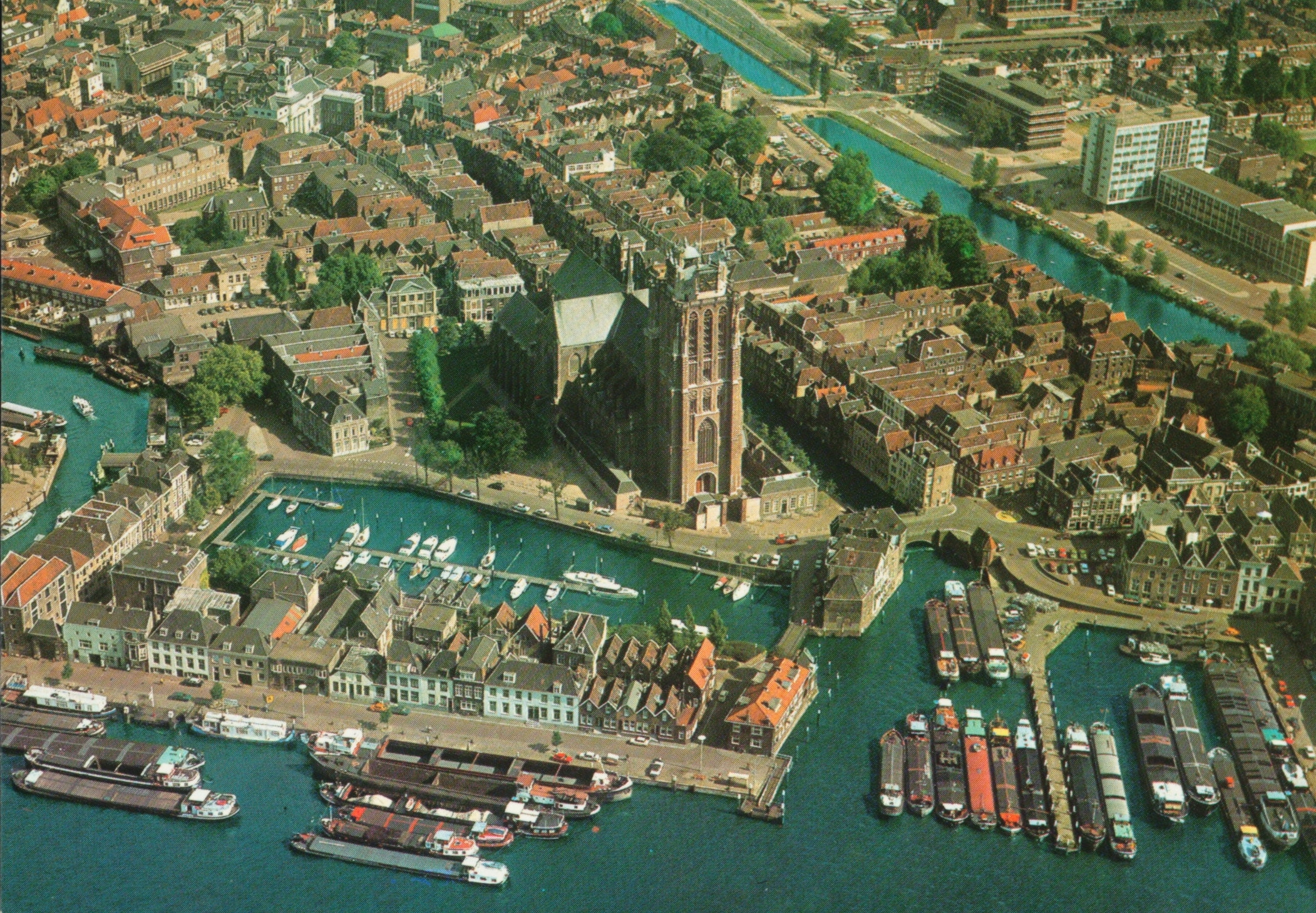 - Luchtfoto van de Grote Kerk, Hooikade, Maartensgat en Lange Geldersekade.