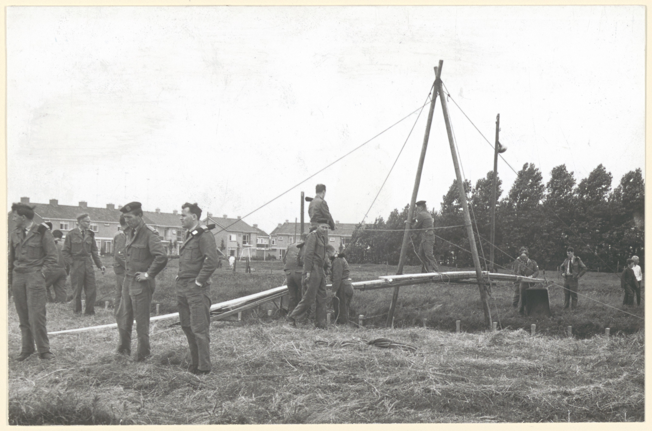 Grootscheepse oefening door de Dordtse afdeling van de BB; de foto geeft een beeld van de situatie nabij de Elzenlaan te Dubbeldam.