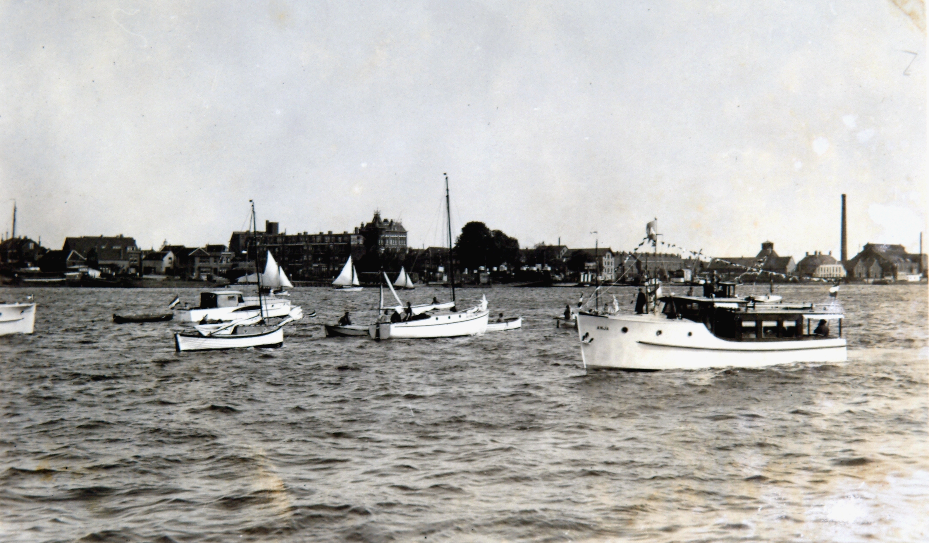 - Propagandatocht van de V.V.V. voor de watersport op de Oude Maas. Op de achtergrond Zwijndrecht.