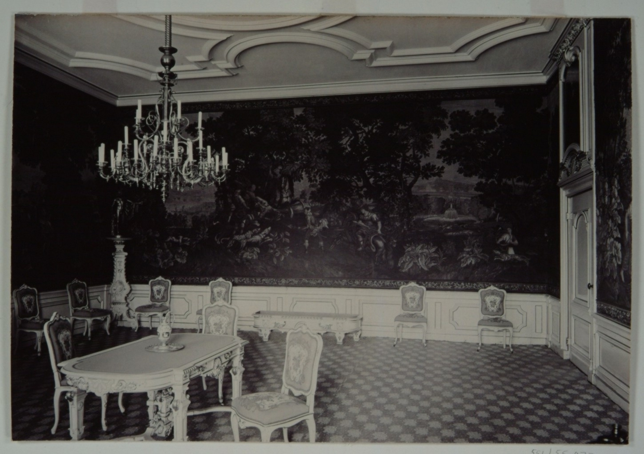 Nieuwe Haven 39; grote zaal in Lodewijk XIV-stijl, gobelinbehangsel met taferelen uit …