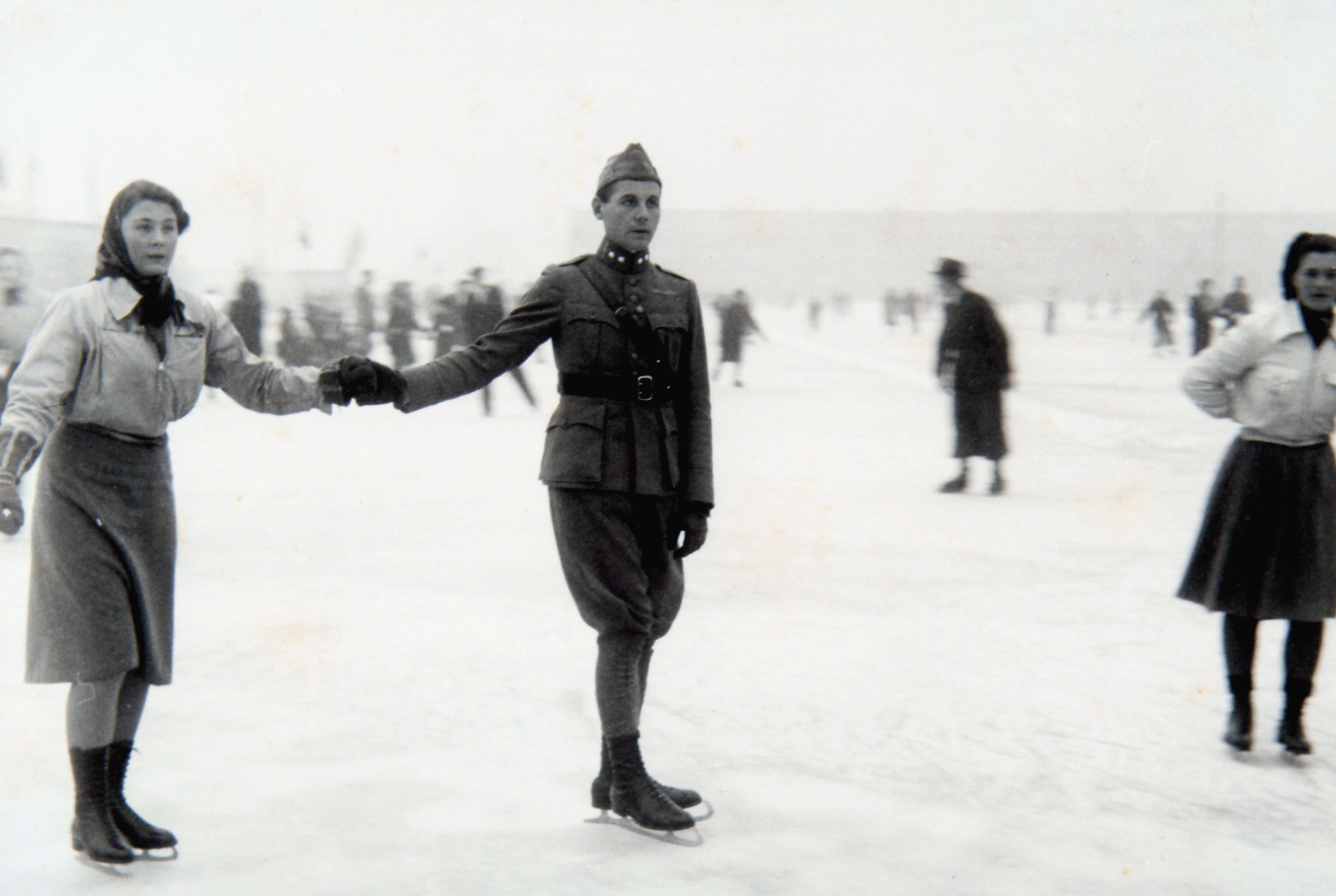 - IJspret te Dordrecht. Mej. C. Delhez, Mr J.J. Vriesendorp en Ita Assies.