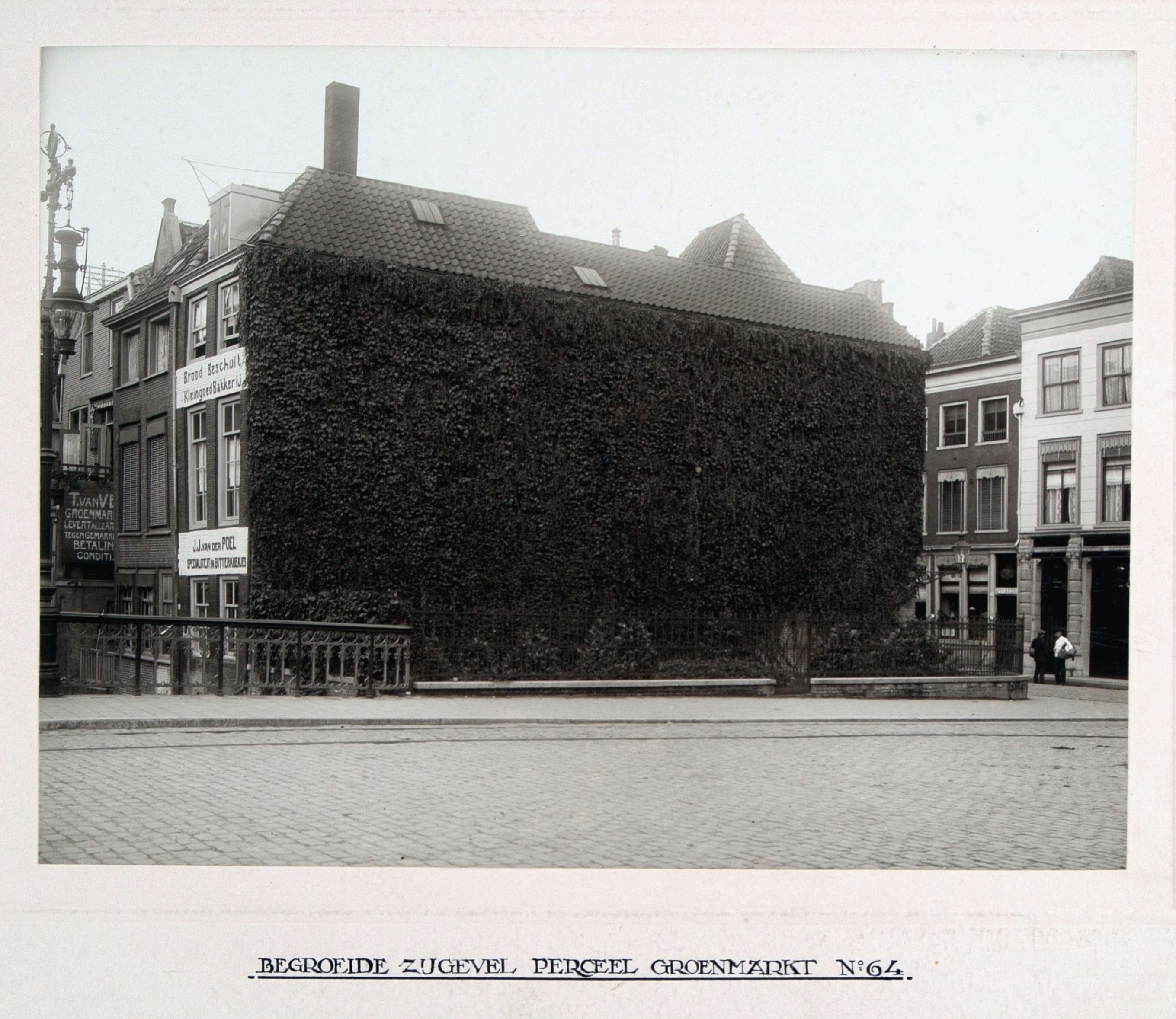 Met klimop begroeide gevel van het pand op de Visbrug hoek, Groenmarkt (rechts).