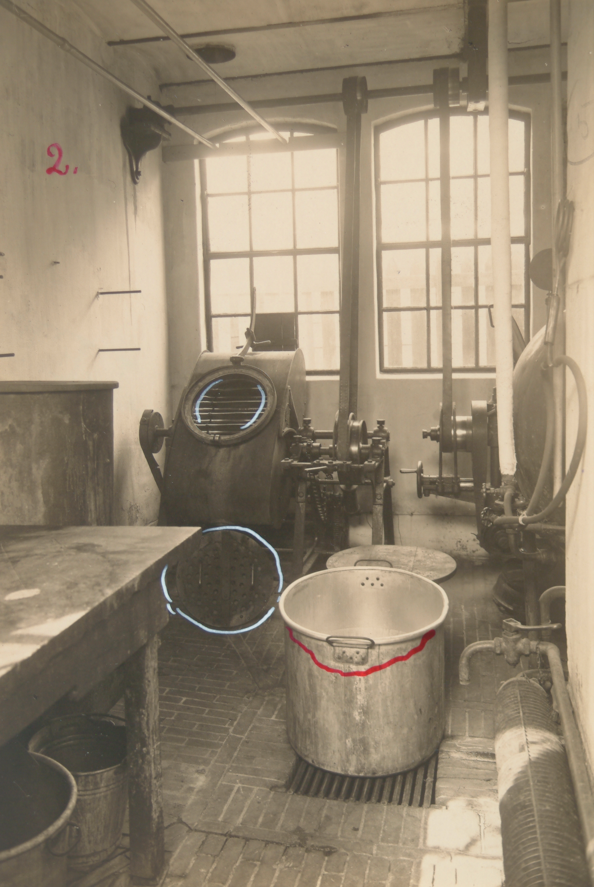 Interieur van kledingwasserij en -ververij A. Bierens aan de Marcellus Schampersstraat