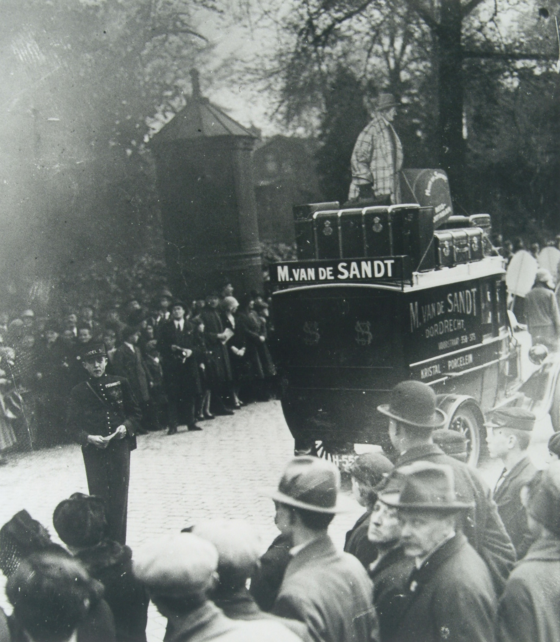 - Bestelauto van winkelier Van de Sandt (gevestigd aan de Voorstraat) in een optocht