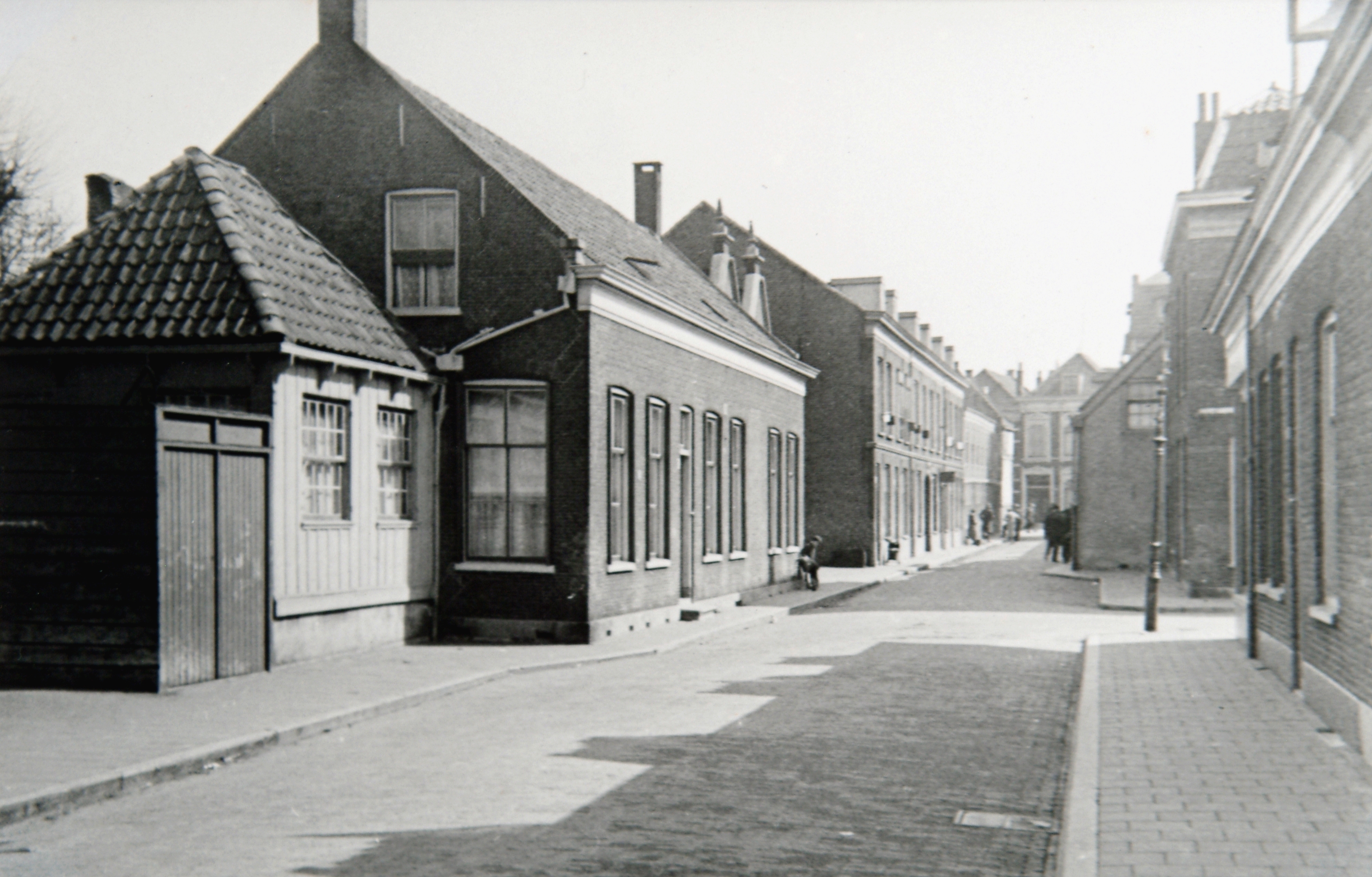 Gezicht op het Geldelozepad in de richting van de Spuiweg. De zijstraat rechts is het …