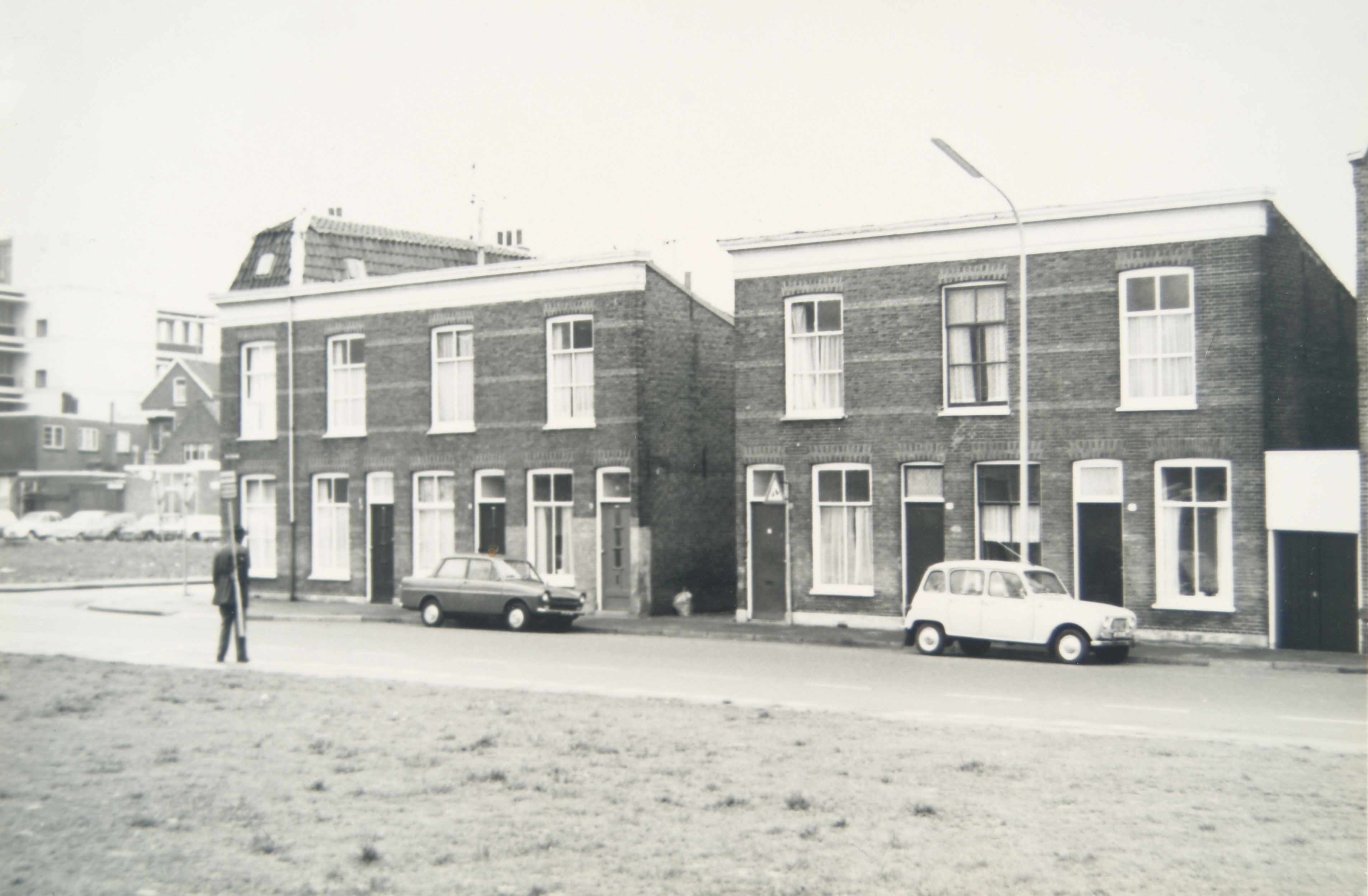 - Met aan de gevel van één van de huizen een verkeersbord
