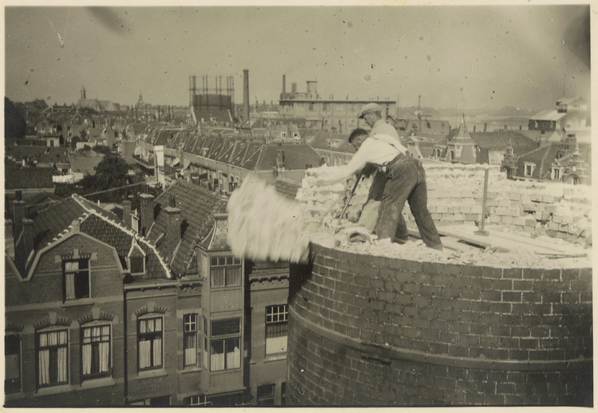 - arbeiders / werklieden elektriciteitscentrales fabriekspijpen / schoorstenen sloopwerkzaamheden