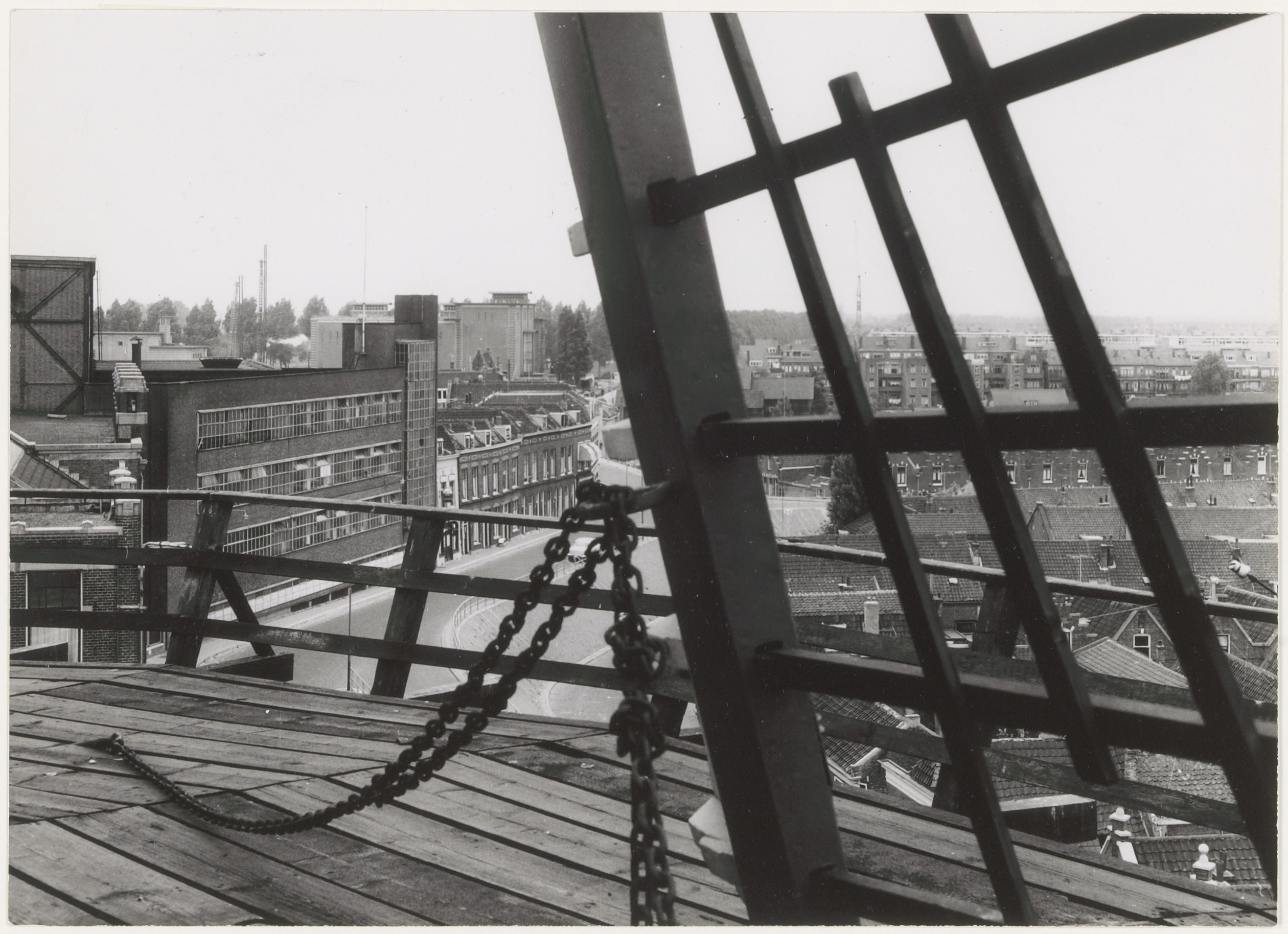Links de elektriciteitscentrale aan de Noordendijk gezien vanaf molen Kijck over den …
