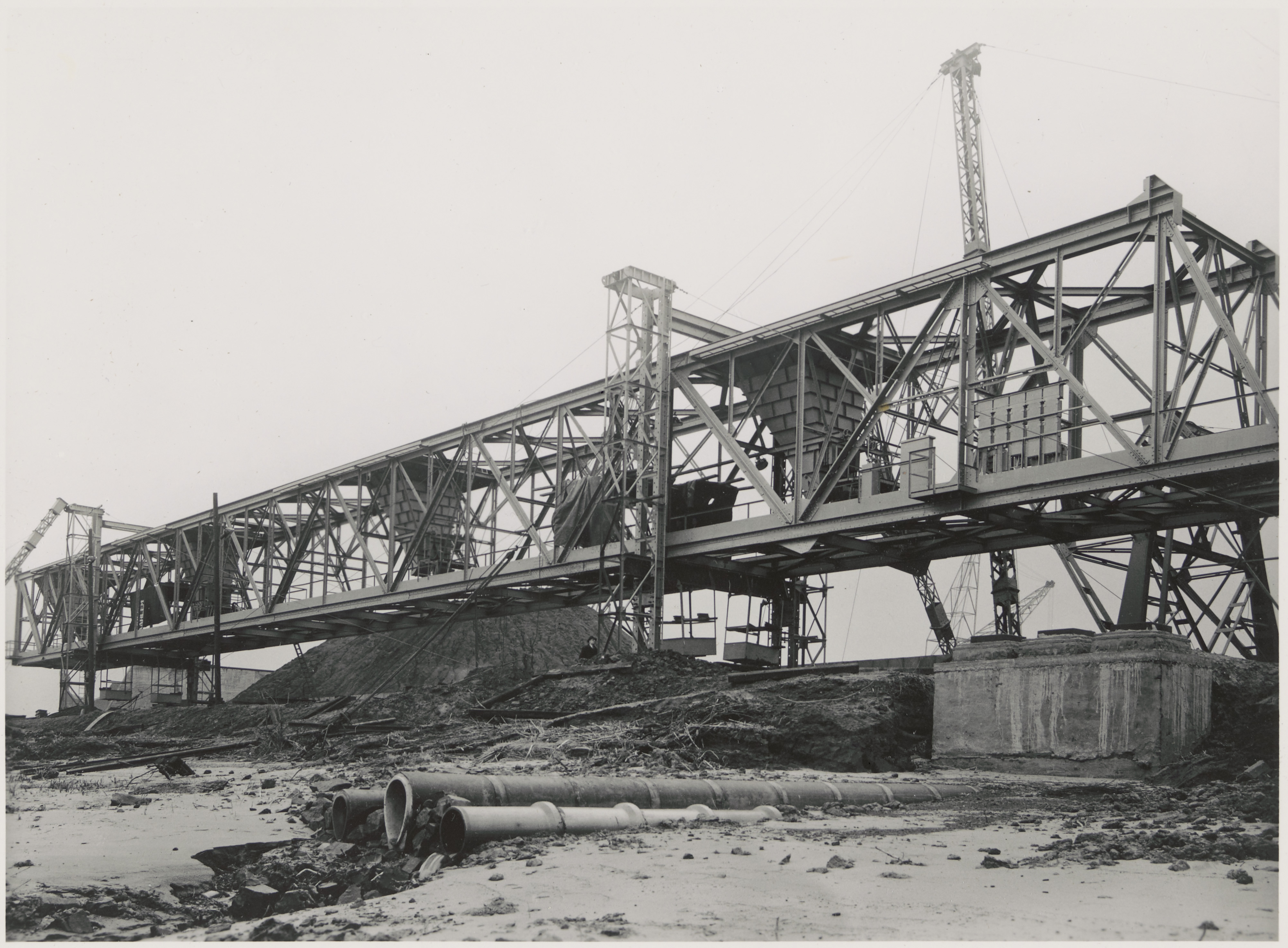 - Brug voor verrijdbare grijperkranen in het kolenpark van de Merwedecentrale op de Kerkeplaat.