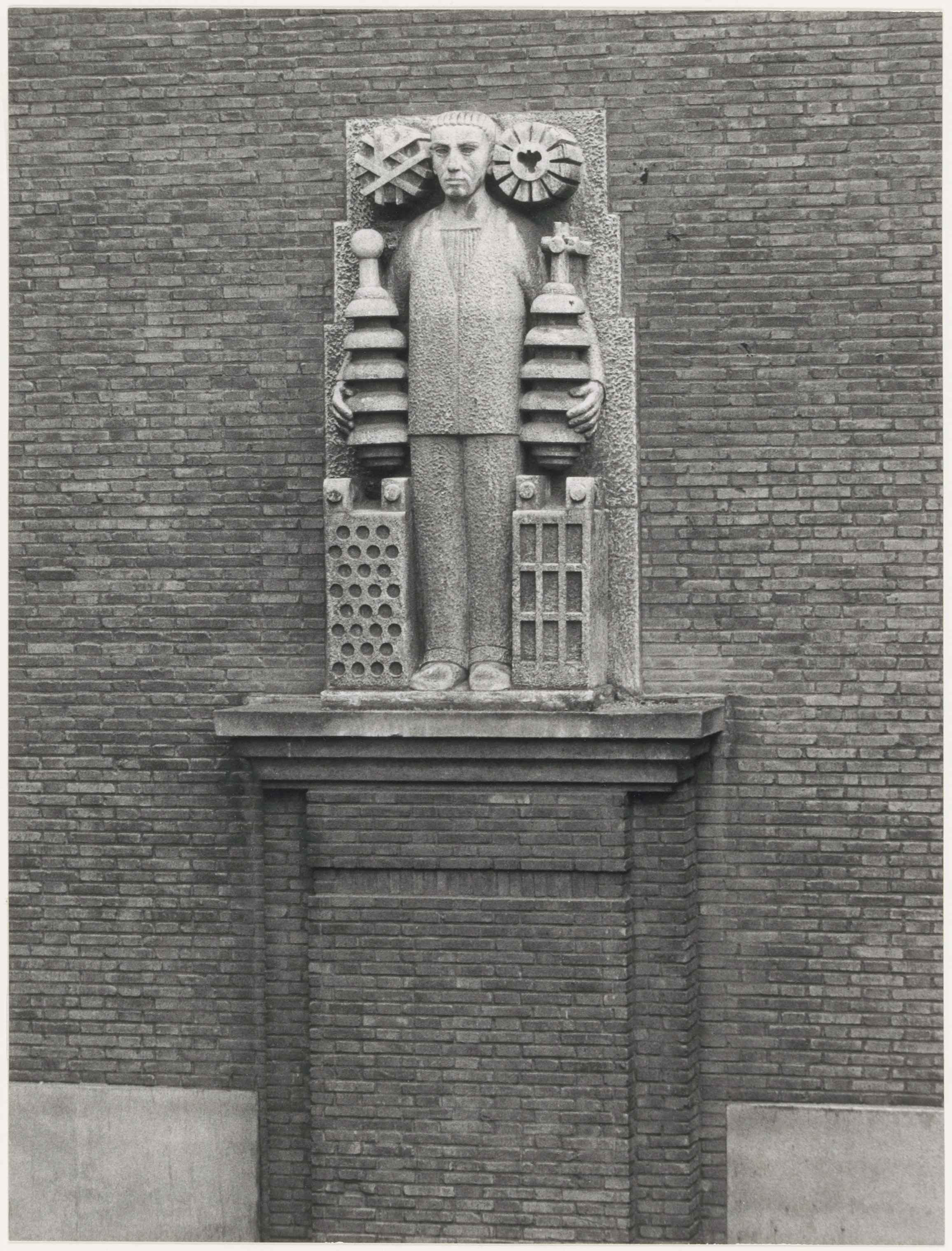 Beeld aan buitenzijde machinezaal van de Merwedecentrale op de Kerkeplaat.