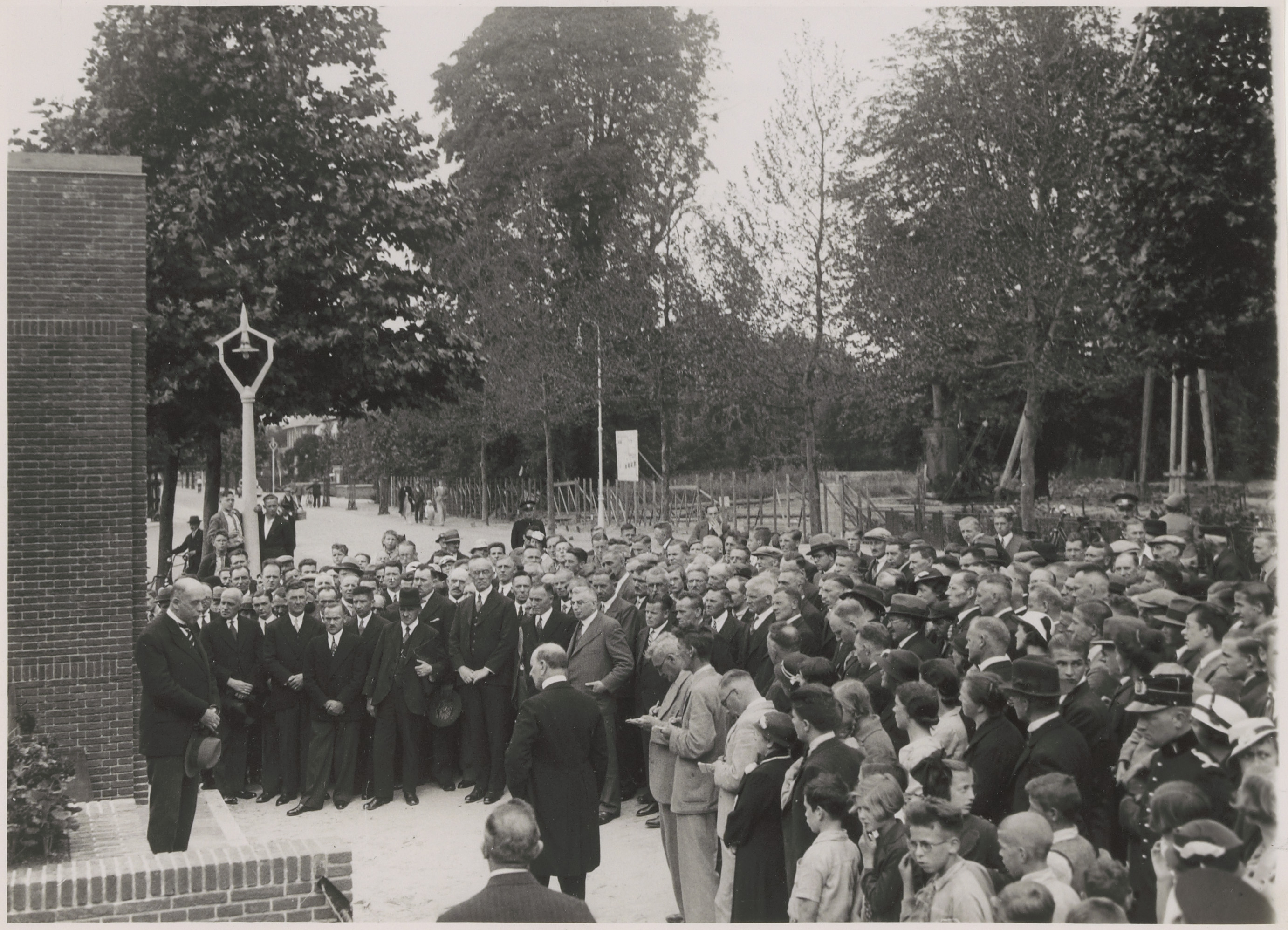 - Toespraak van burgemeester De Gaay Fortman bij de ingebruikneming van de bank met klok aan de Vrieseweg, geschonken door het elektriciteitsbedrijf bij het 25-jarig bestaan.