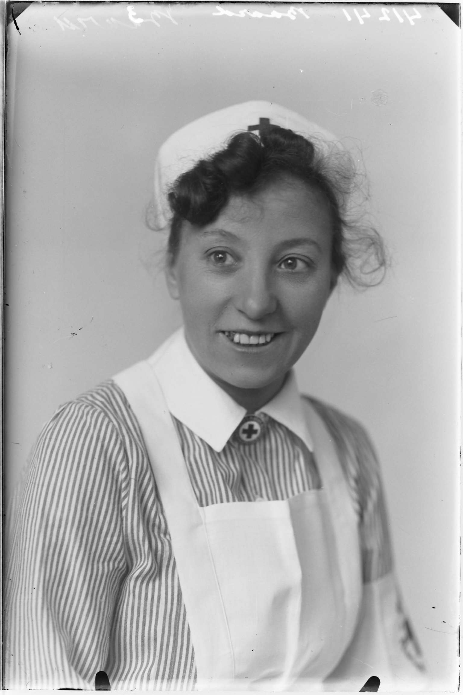 vrouw in uniform (wit schort) Rode Kruis ---- 01-03-1944 fotonummer: 41241 van Baard (?), v. Beverenstraat 15 [bron: www.dordtenazoeker.nl]