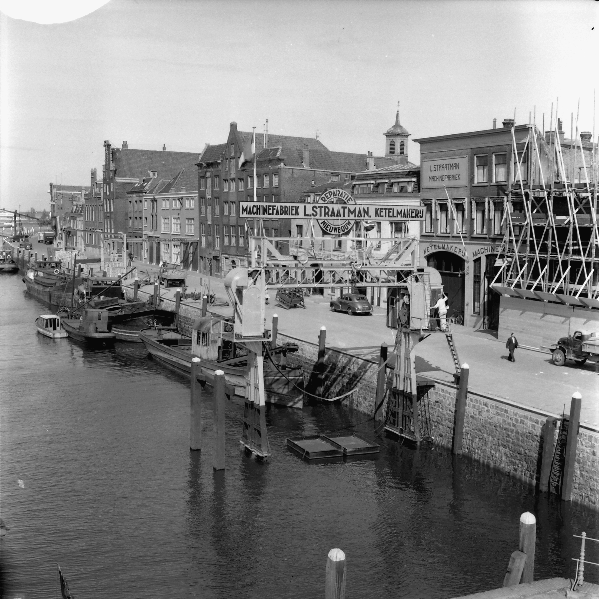 - Machinefabriek L. Straatman aan de Kuipershaven. Het plaatsen van de scheepslift.
