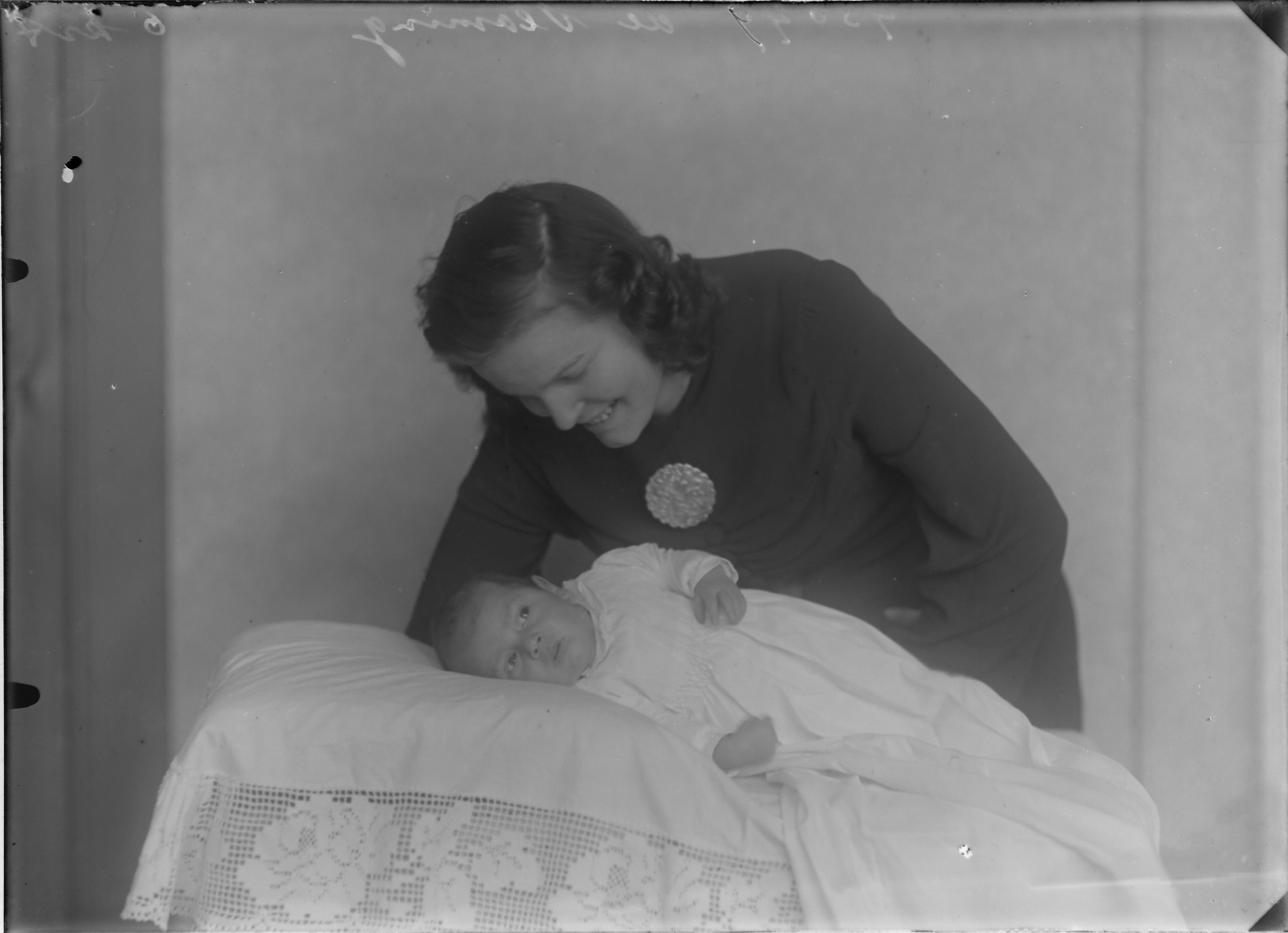 vrouw met liggend kind (doopjurk) (rug) ----- 9/14 jan. 1945 fotonummer 43049 De Vlaming, Vrieseweg 71(!) [bron: www.dordtenazoeker.nl]