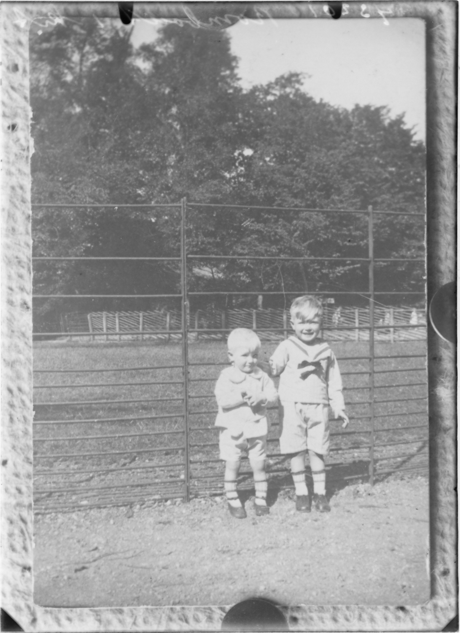 twee kinderen bij hek, hertenpark ? (foto van foto) ---- 20/25 febr. 1945 fotonummer 43201 Rombout Eigenhaard 11 ---- WONINGKAART 1947 Eigenhaard 11 Nicolaas W. Rombout