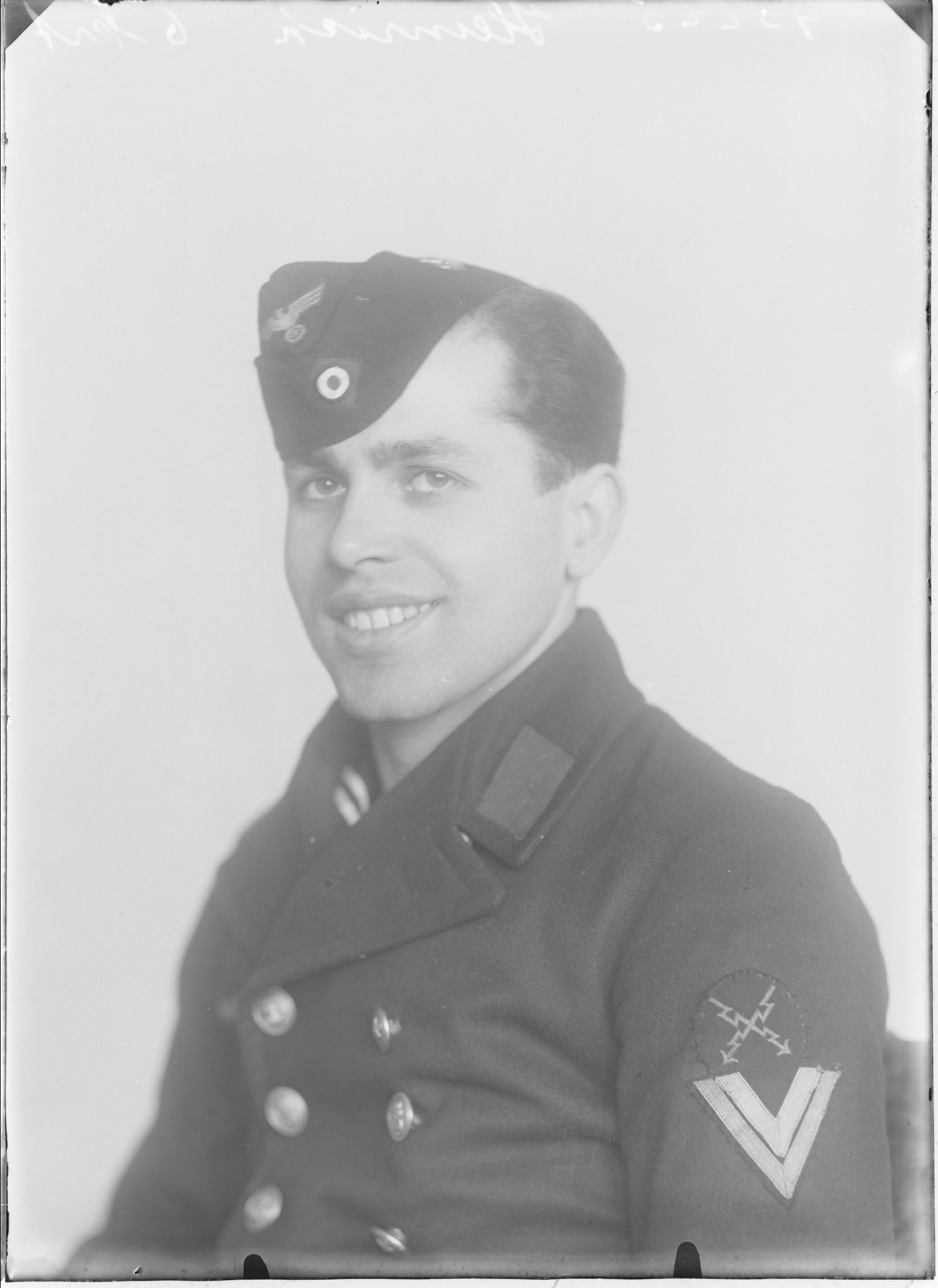 20/25 febr. 1945 fotonummer 43225 Heinrich, D. Mil. ---- jonge Duitse soldaat, militair, in uniform, pet, jas met knopen