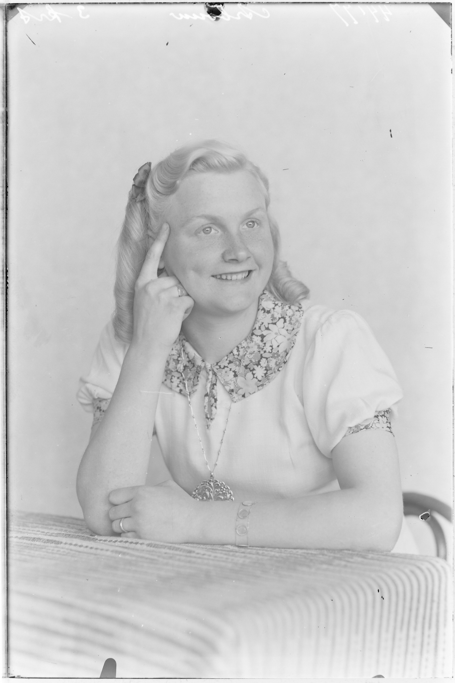zittende blonde vrouw (gebloemde kraag, witte blouse, ketting met hanger) ---- juli 1945 fotonummer 44177 Arbouw Javastraat [bron: www.dordtenaZOEKer.nl] ---- WONINGKAART 1938 Javastraat 32rd Johan P. Arbouw /// 1940 Javastraat 21rd Pieter C. Arbouw