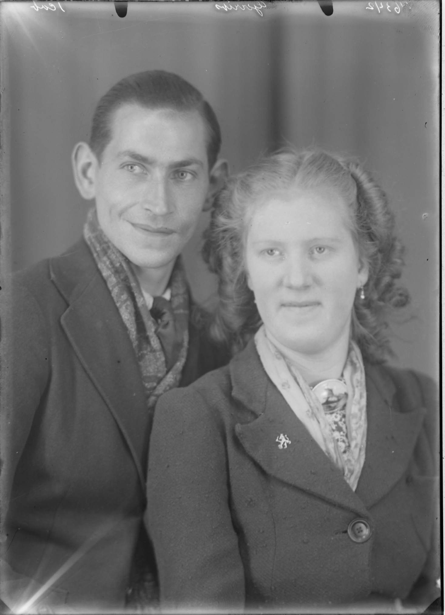 man en vrouw (sjaal, broche (molen), speldje nederlandse leeuw) ---- 04-05-1946 fotonummer 46342 Gerrits Matena'spad 22 [bron: www.dordtenaZOEKer.nl] ---- WONINGKAART 1938 Matena'spad 22 Hendrik Gerrits / Johanna J. Schutte / Teunis Gerrits