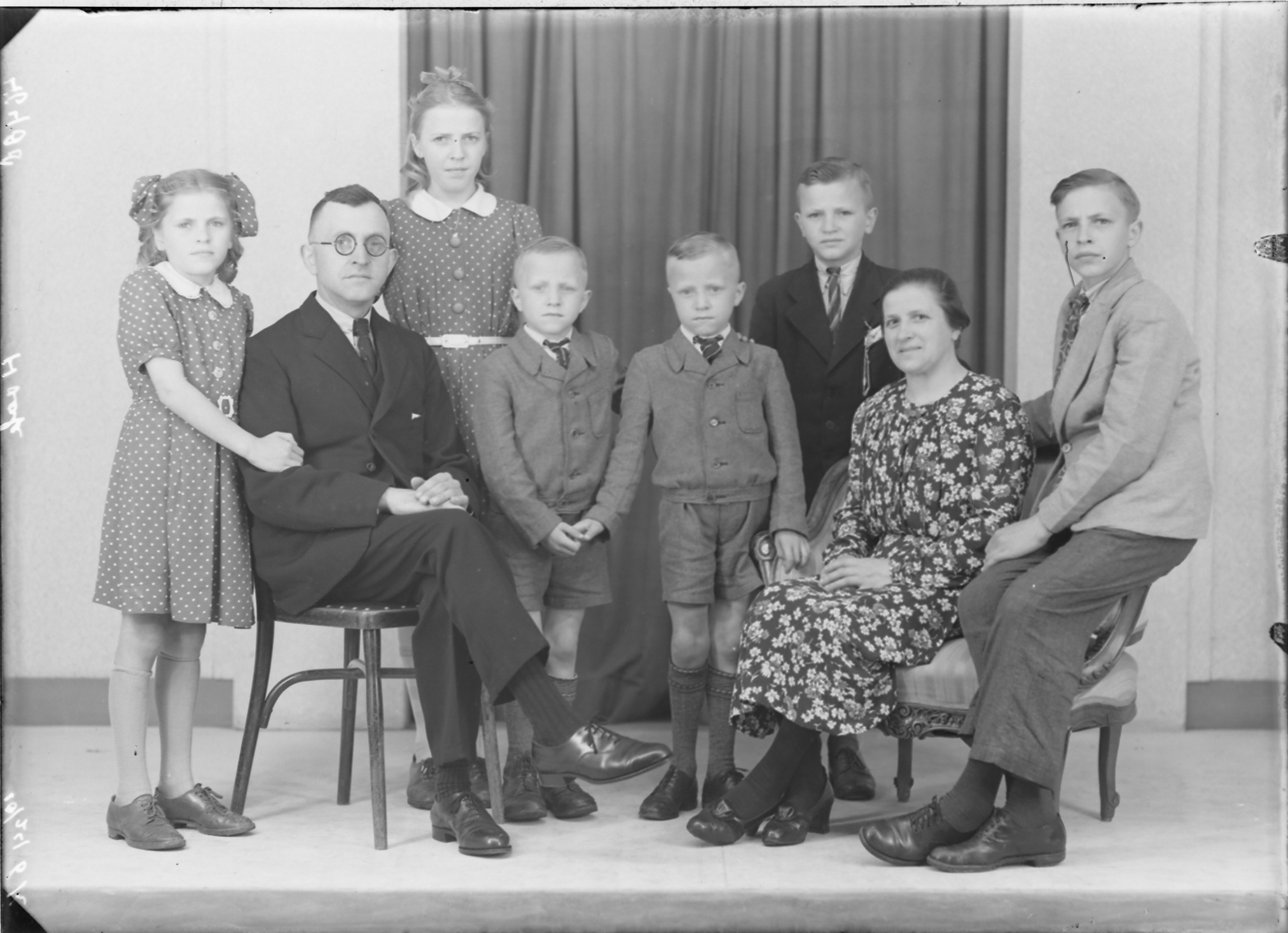 groepsfoto: man, vrouw en zes kinderen (4 jongens, twee meisjes) ---- 01-06-1946 fotonummer 46488 Haak, Hoofdstraat 8, Papendrecht [bron: www.dordtenaZOEKer.nl]