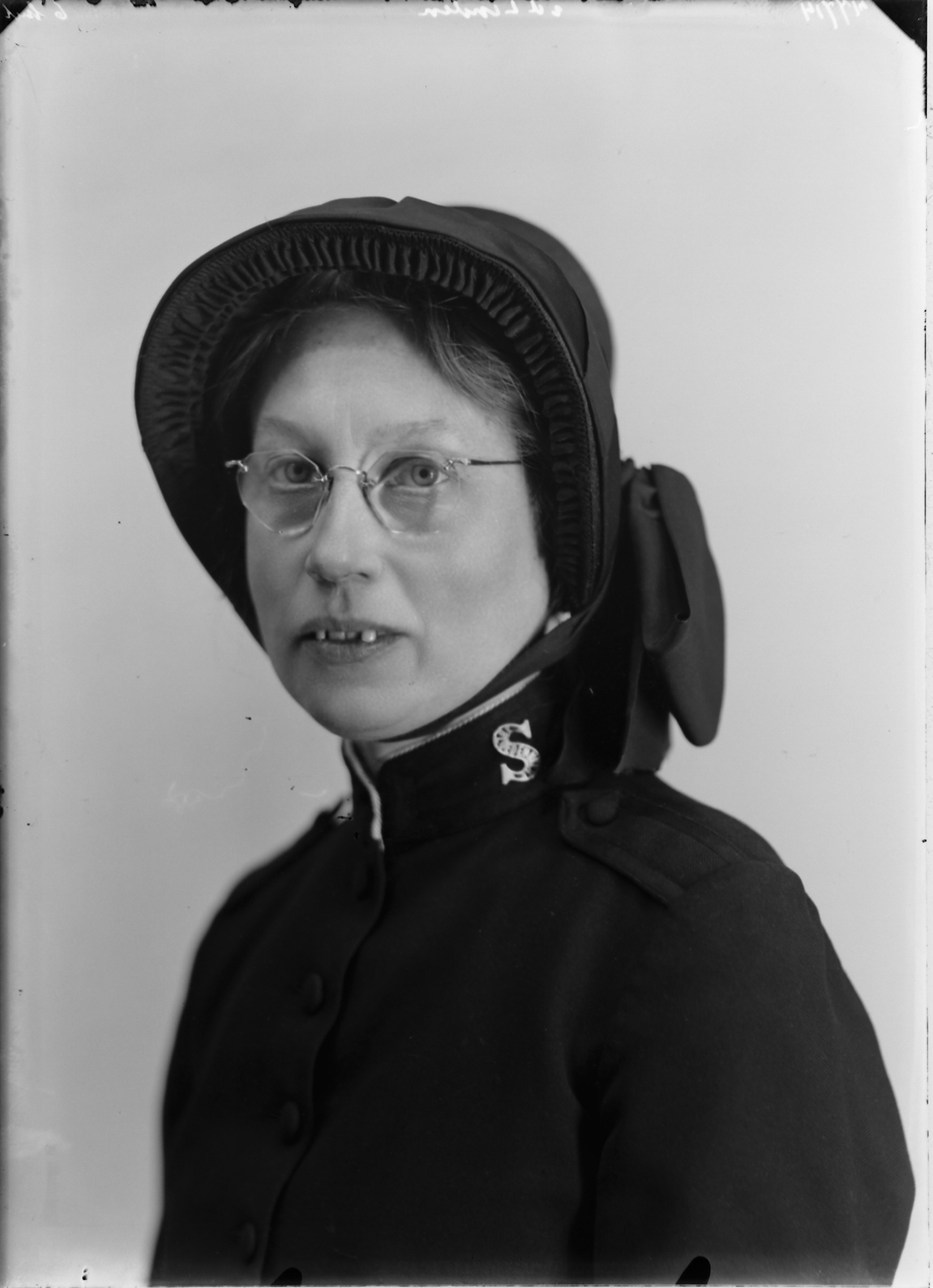 vrouw (uniform Leger des Heils (S), hoed, bril) ----- BEERMAN mrt 1947 fotonummer 47714 v.d. Linden Lomboklaan B120 Leersum U [bron: www.dordtenaZOEKer.nl]