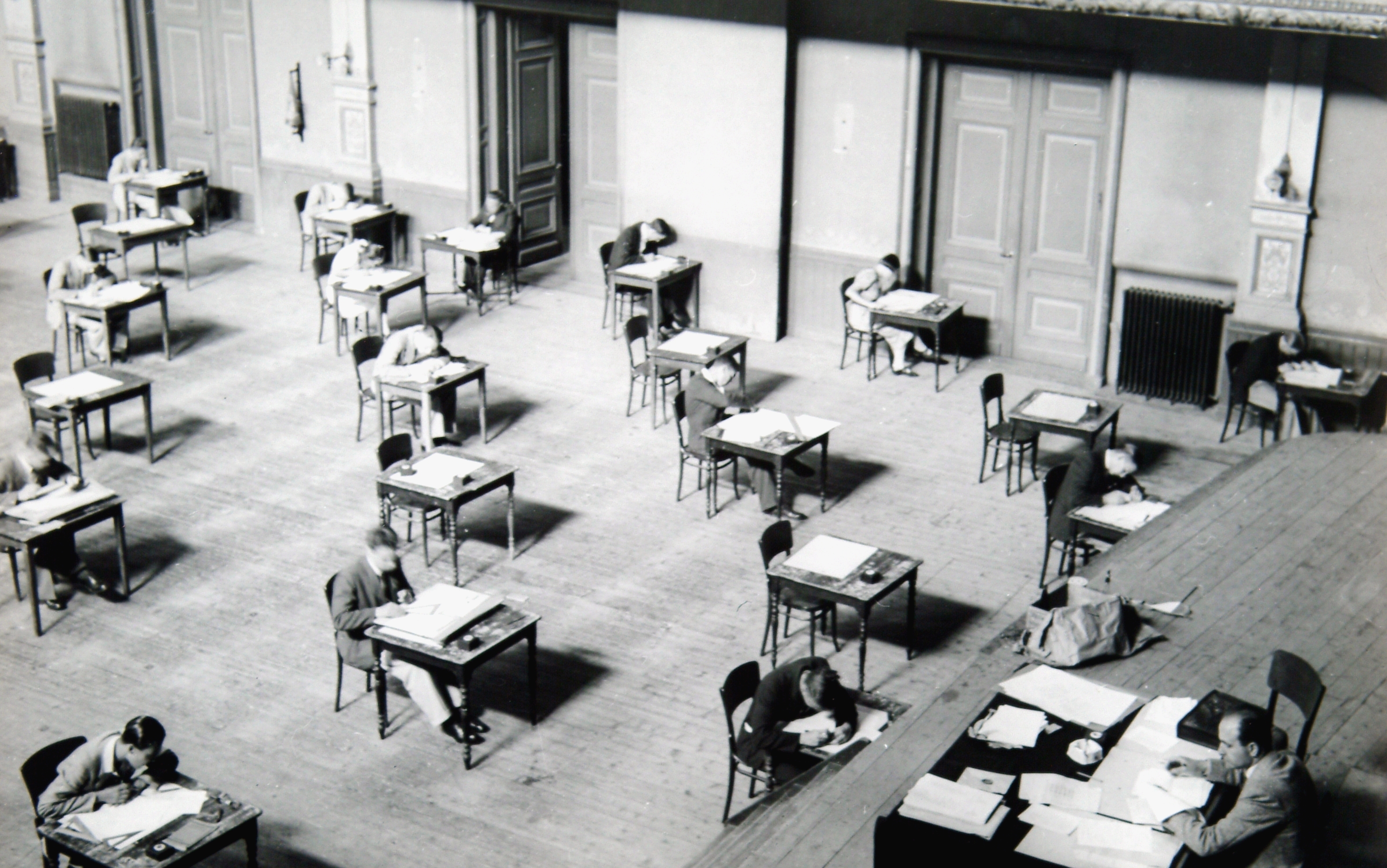 Eindexamen H.B.S. in Kunstmin onder toezicht van de heer Tyllony.