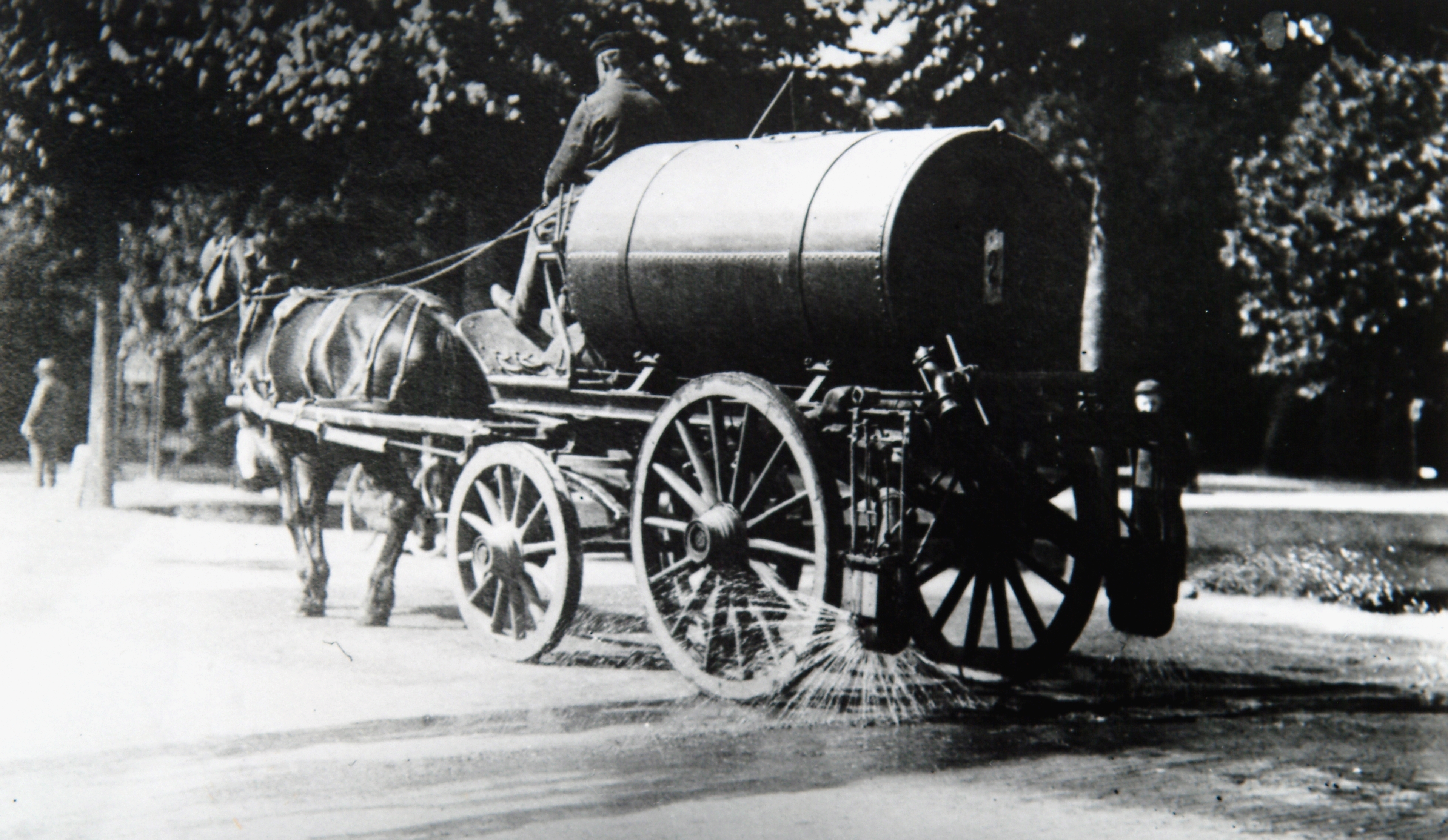 Sproeiwagen van de Reinigingsdienst op de Vrieseweg ter hoogte van Park Merwestein.