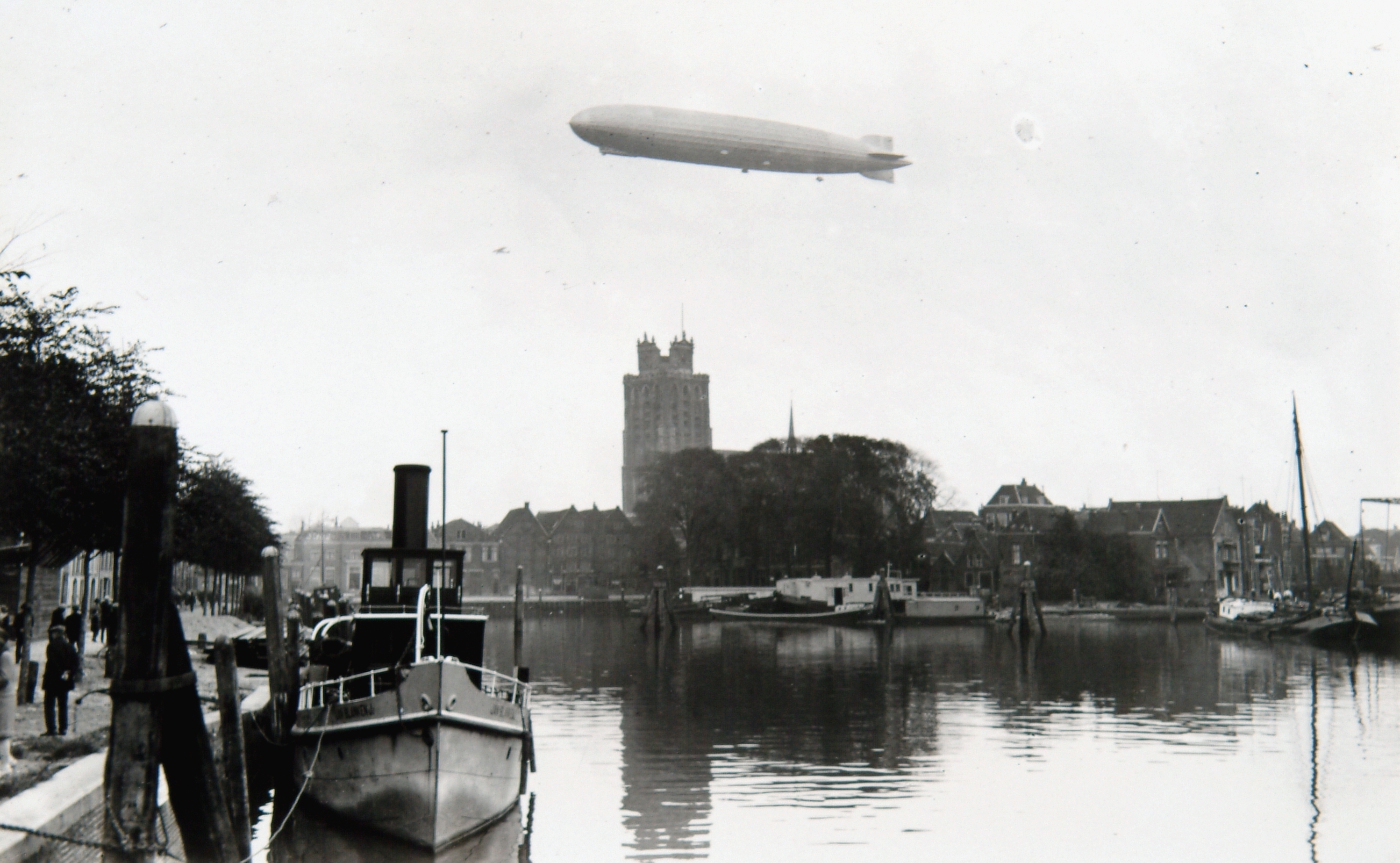 - Op zondagochtend arriveerde de zeppelin boven Dordrecht, hier bij de Kalkhaven.