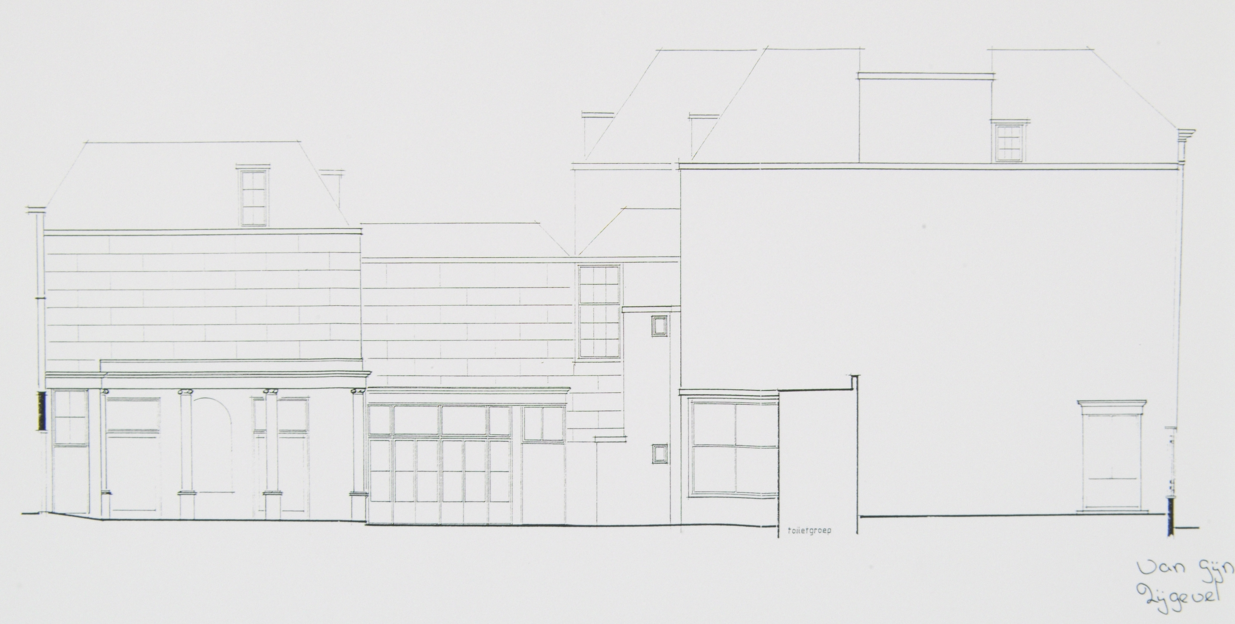 Zijgevel van Huize Paul (Museum '40-45) aan de Nieuwe Haven, hoek Venloostraat.
