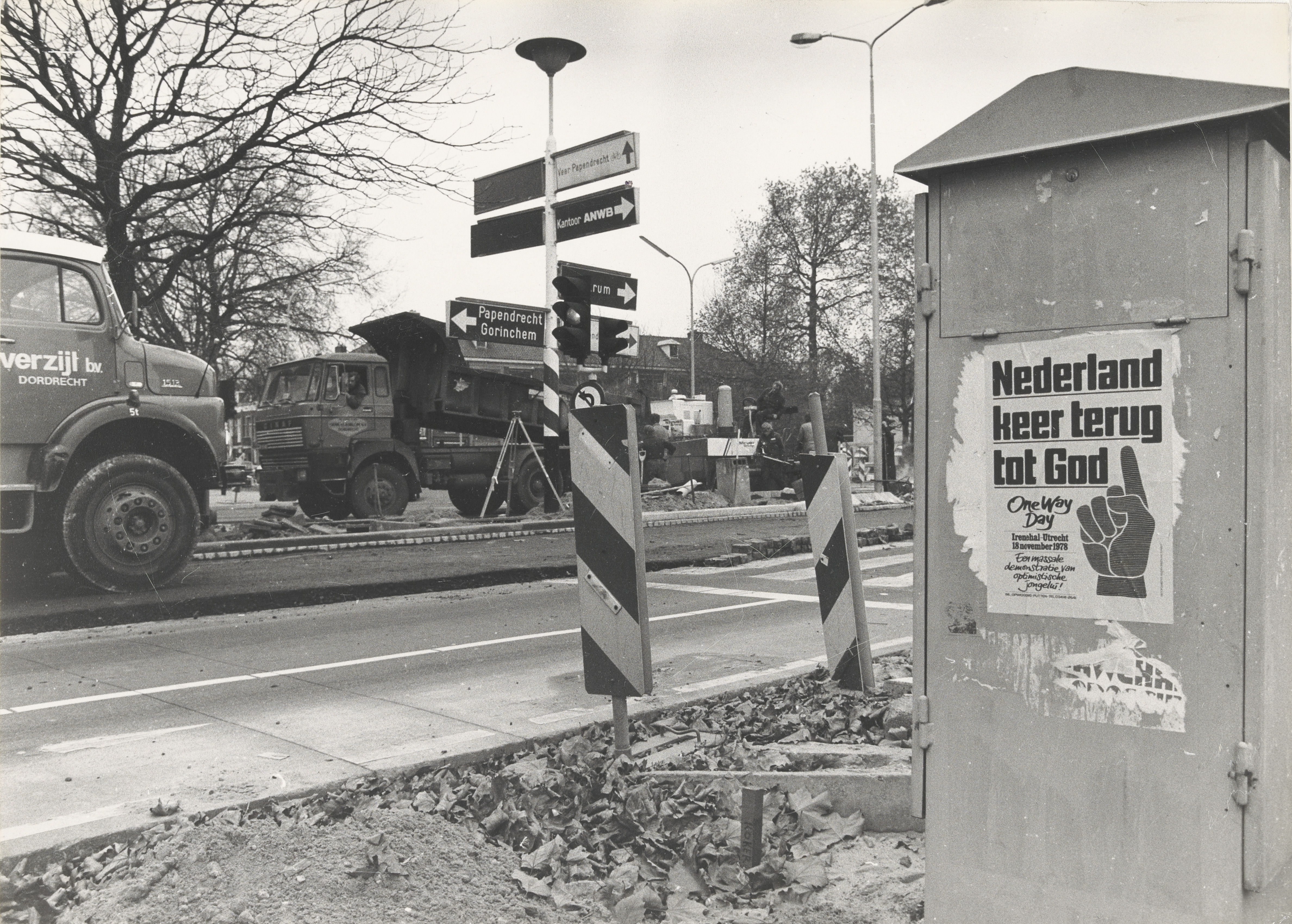 - Rechts een electriciteitskastje met affiche (Nederland keert terug tot God).