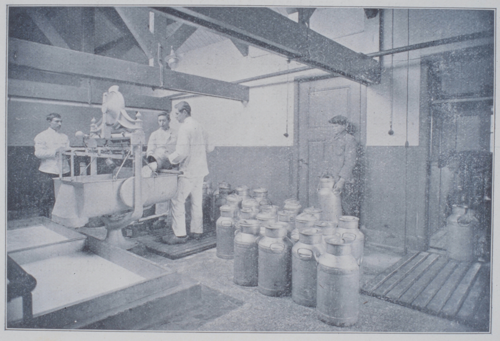 Waarschijnlijk een ruimte in de N.V. De Nieuwe Melkinrichting, oostzijde Bagijnhof (oud nummer 40 en 42) vanaf 1912. Binnenkomende melkbussen worden geleegd. Melkfabriek gesloopt en bebouwd met de C&A in 1929.