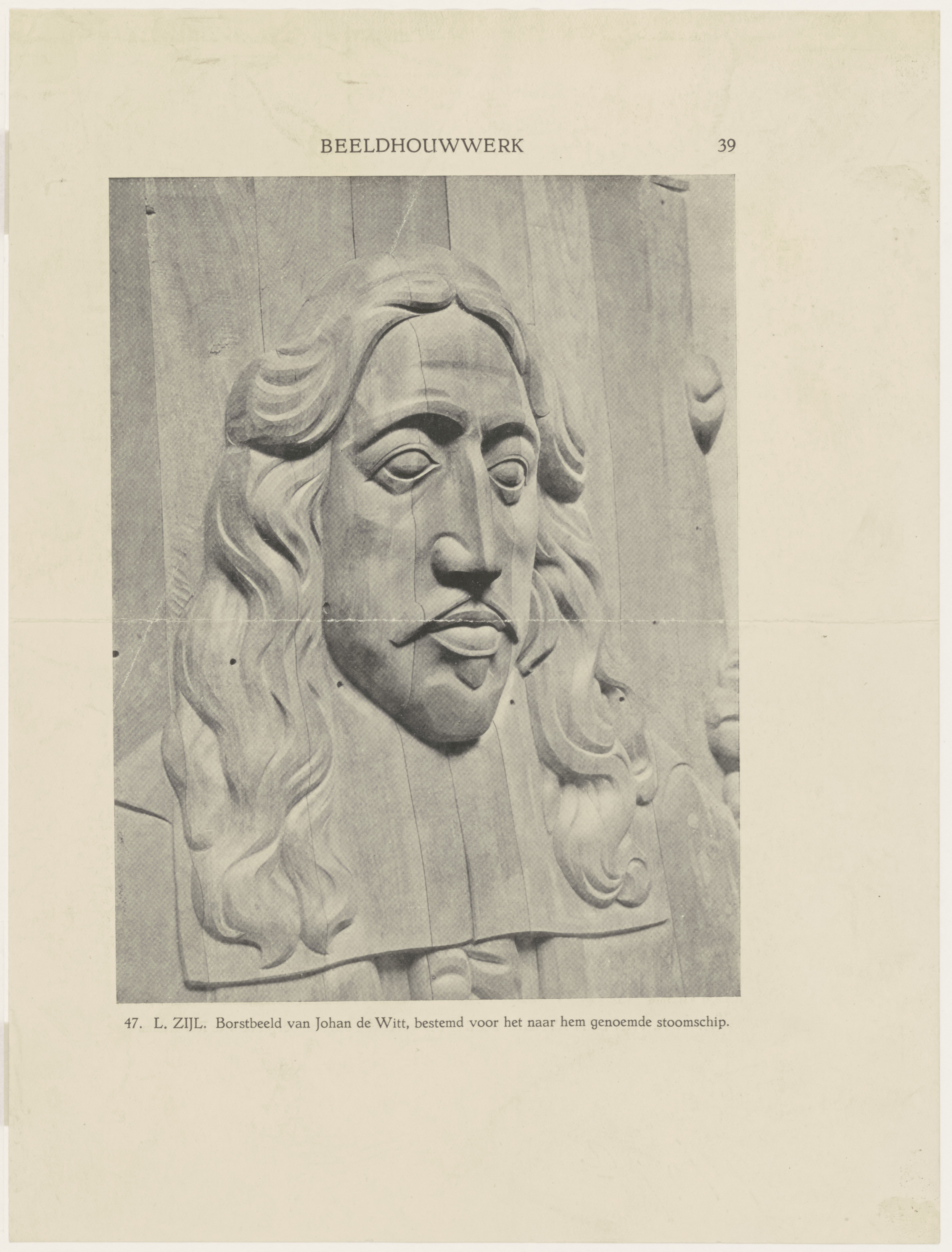 Borstbeeld van Johan de Witt door beeldhouwer Lambertus Zijl bestemd voor het in 1919 tewatergelaten gelijknamige stoomschip van de Nederlandsche Scheepbouw Maatschappij.