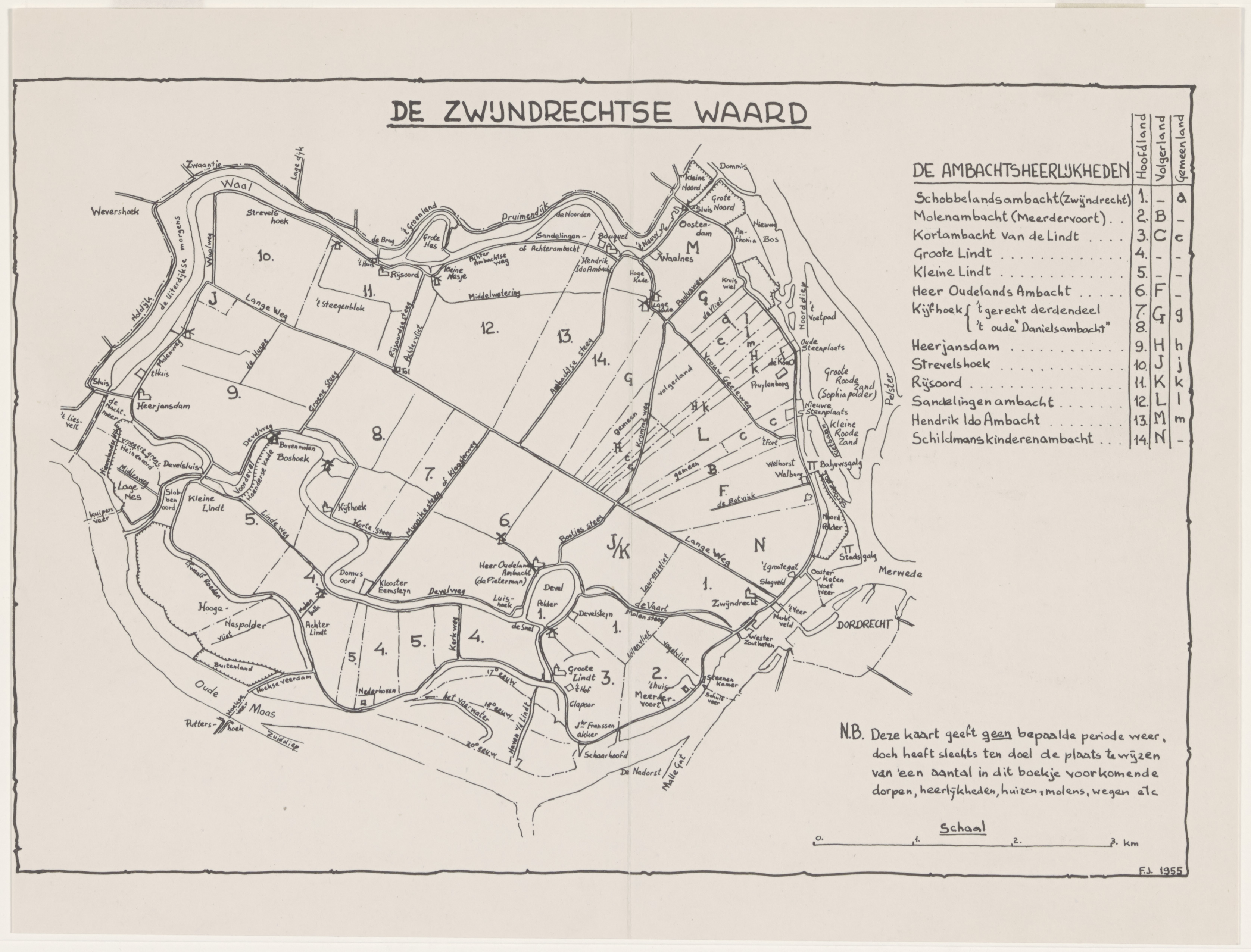 - Landkaart met ambachtsheerlijkheden in de Zwijndrechtse Waard.