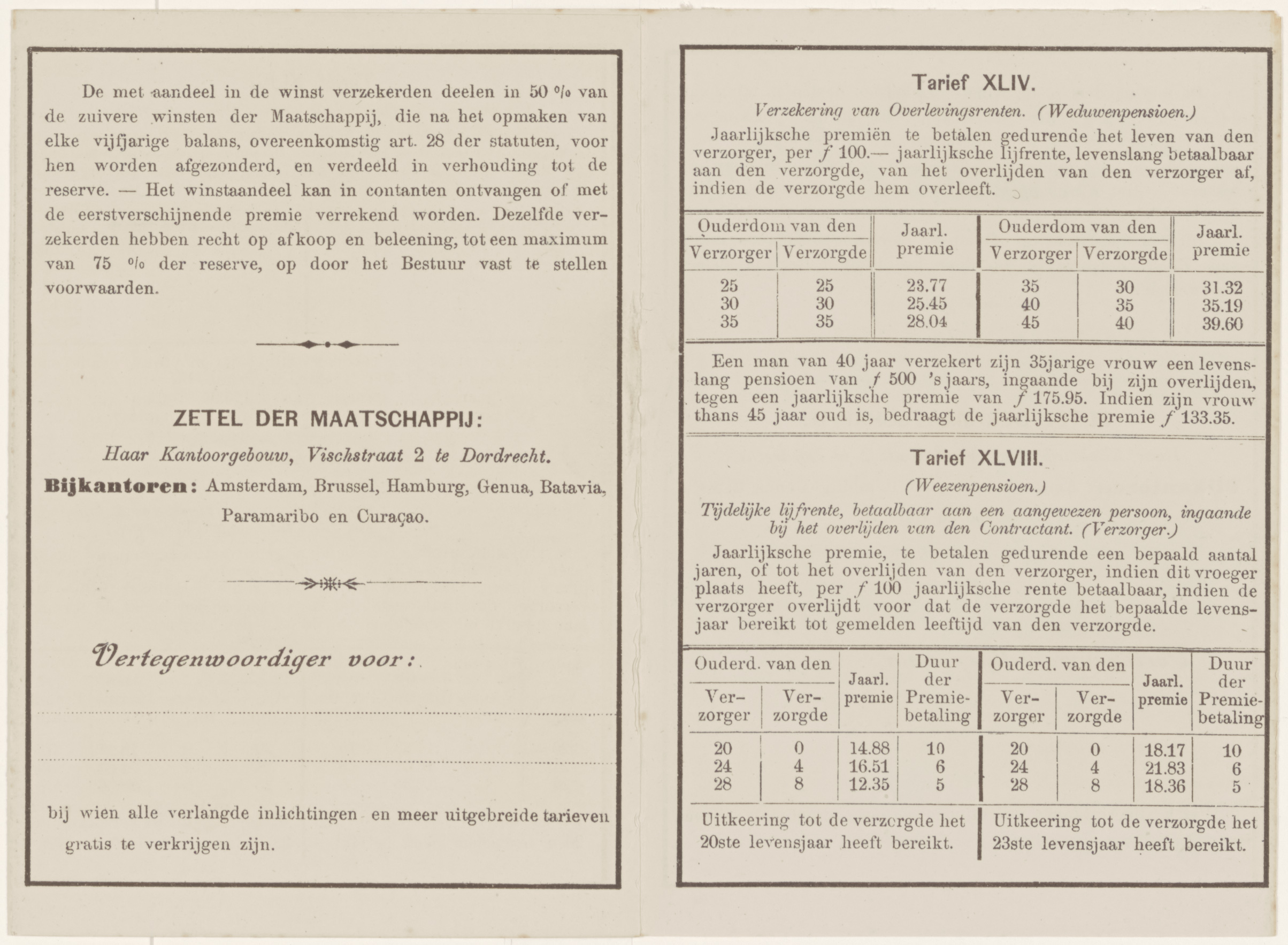 Tarievenlijst van Levensverzekering Maatschappij Dordrecht.