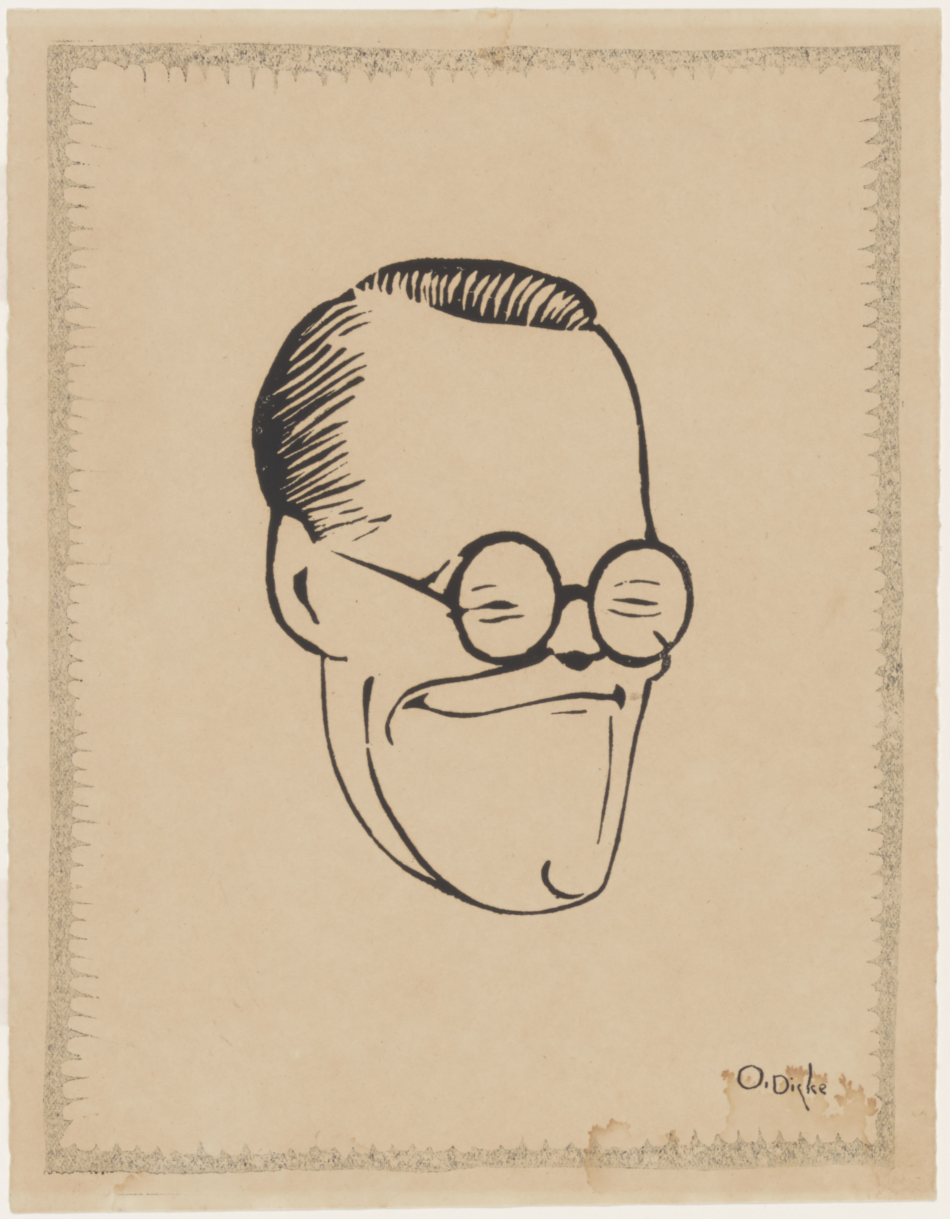 - Karikatuur van prins Bernhard, een linosnede door Otto Dicke.
