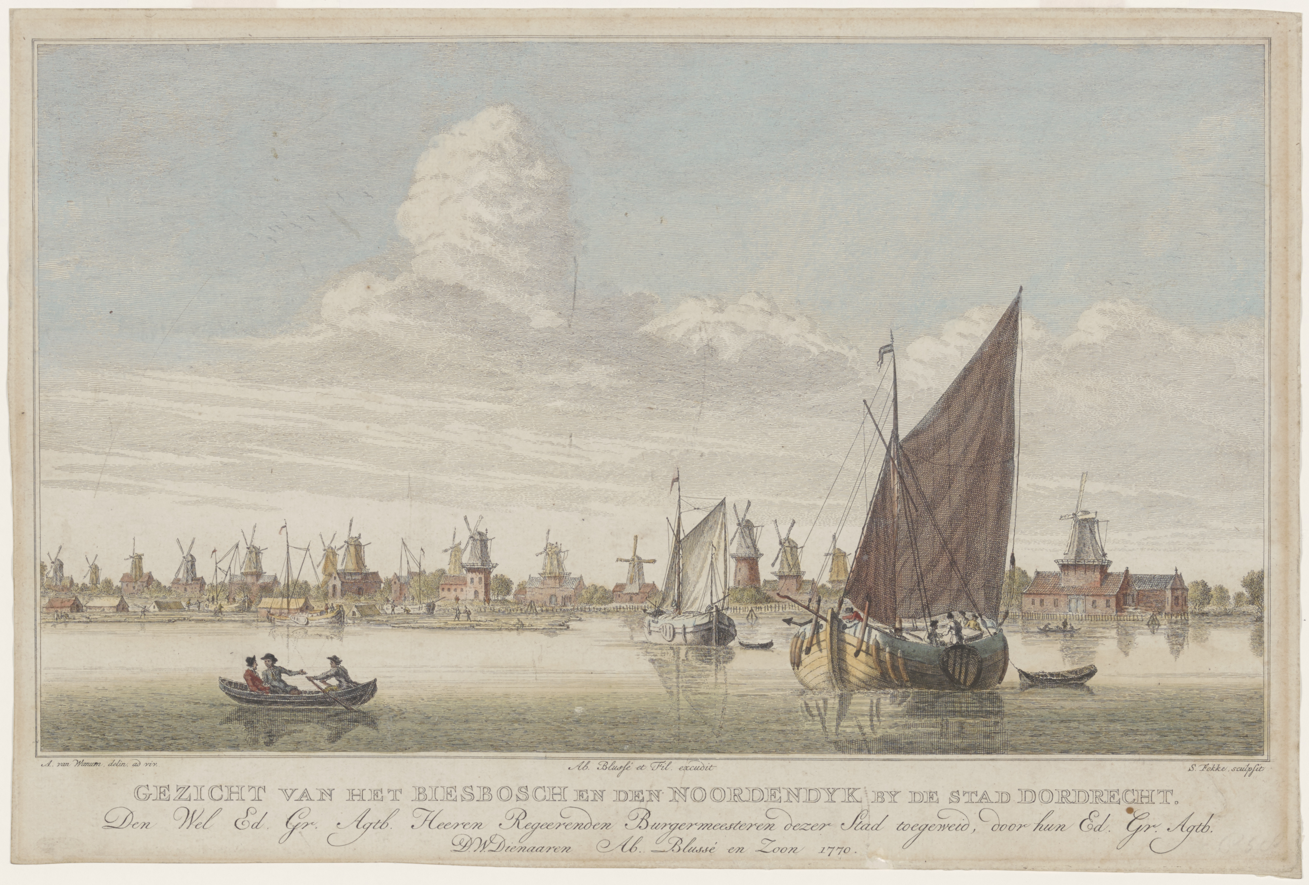- Molens aan de Noordendijk op een schilderij van A. van Wanum. Van rechts naar links: De Reus Goliath, De Vilder, De Haas, Kijck over den Dijck, De Goudvink, De Hoop, De Eendracht, De Valk, De Nachtegaal, Het Varken, De Duinen, De Windhond, De Pauw, molen Noordpolder, De Jager.