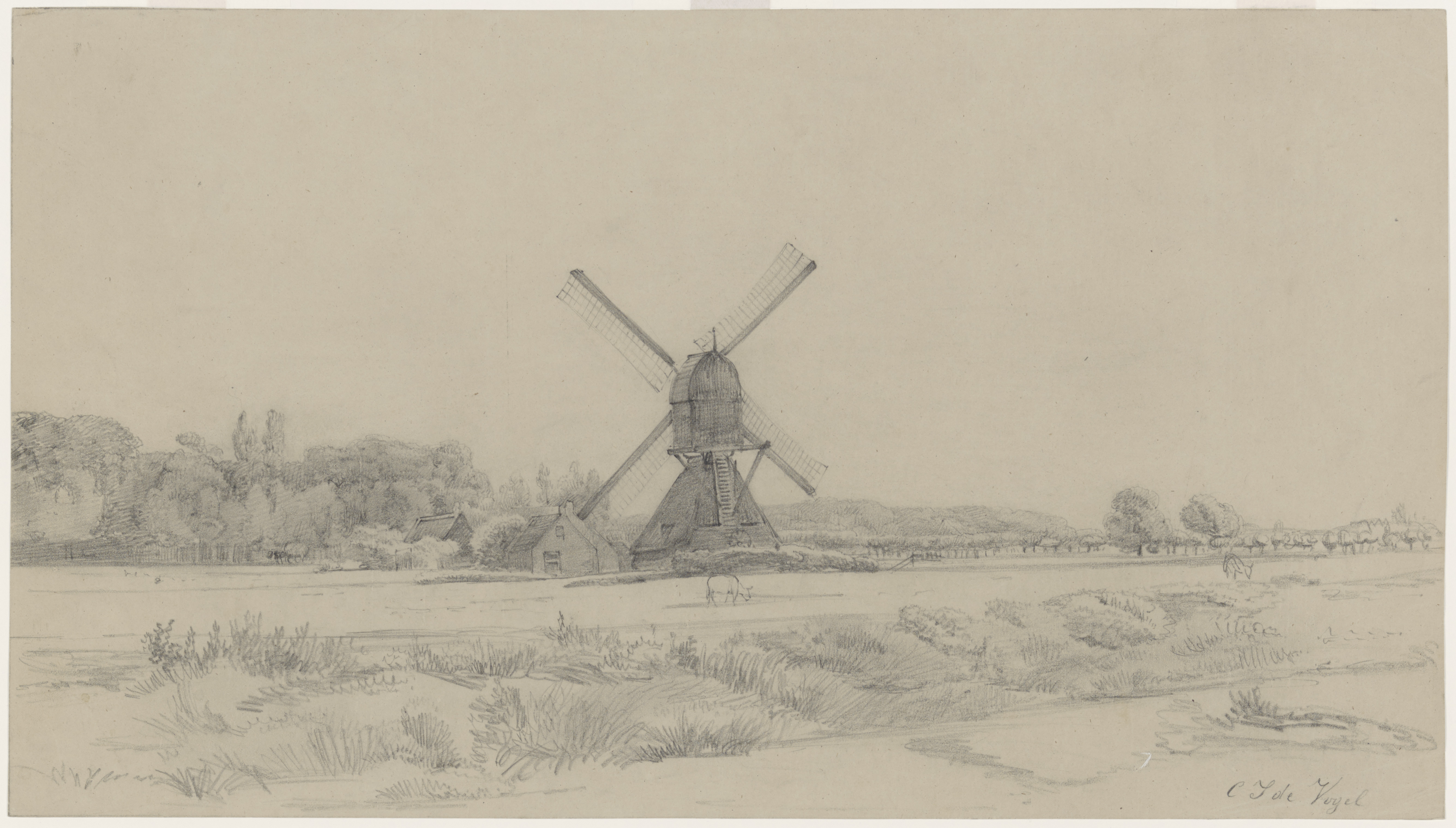 - Tekening door C.J. de Vogel van de Watermolenweide.