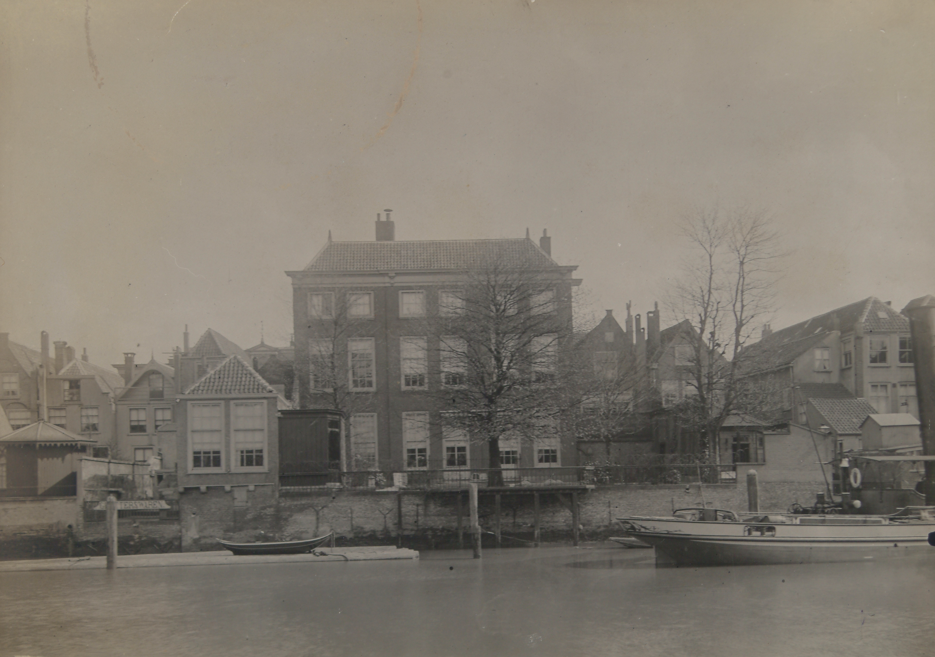 - Achterkant van het patriciërshuis aan de Voorstraat 125. Het huis is van de fam. Den Bandt. Je kijkt over de Wijnhaven