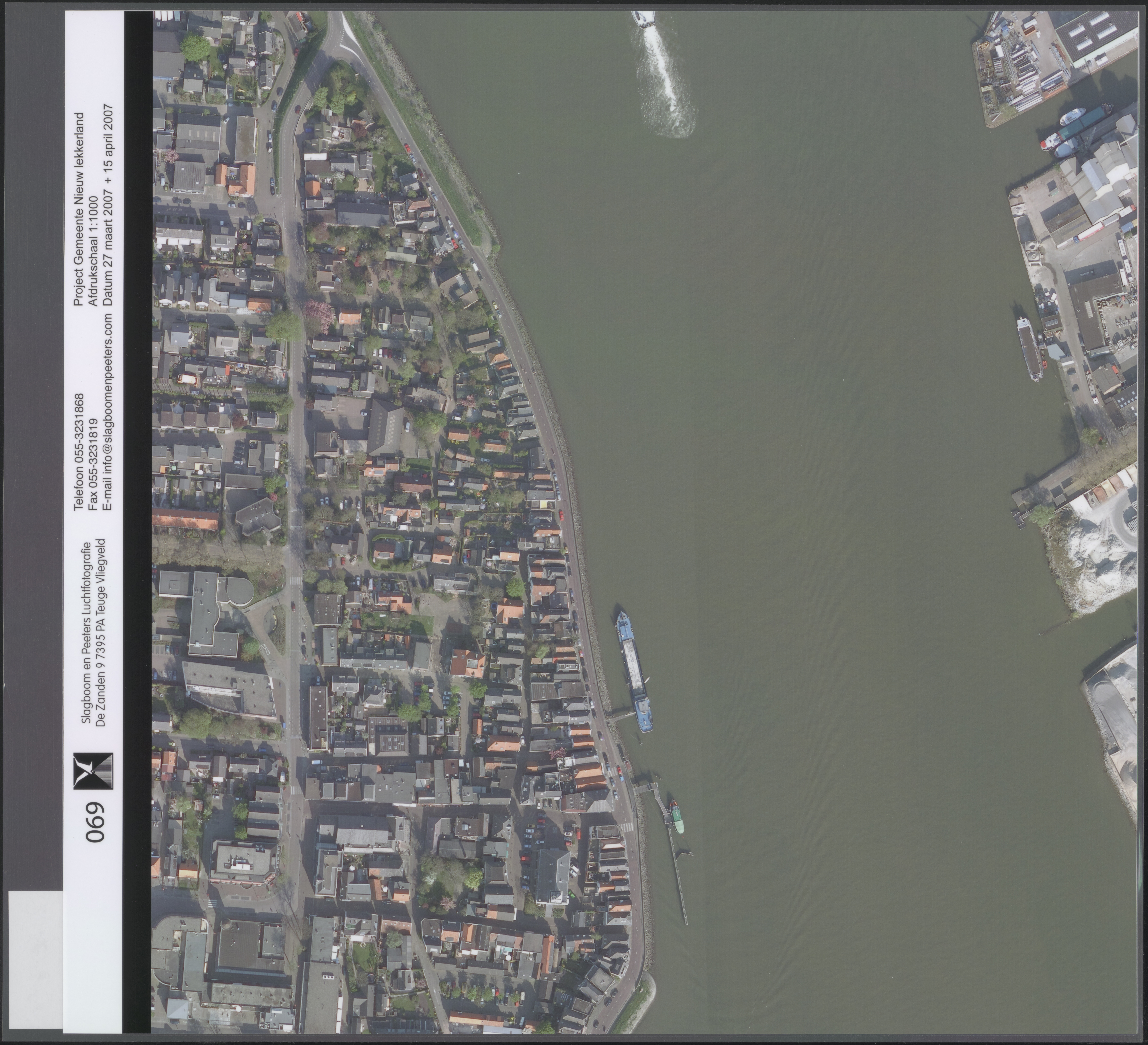 - Luchtfoto van het gebied: Lekkerkerk: Broereshof Burgemeester van der Willigenstraat Emmastraat Fortpad Geuzenplein Julianastraat Kerkweg Koninginneweg Korte Achterweg Lek Middenhof Oosterhof Voorstraat