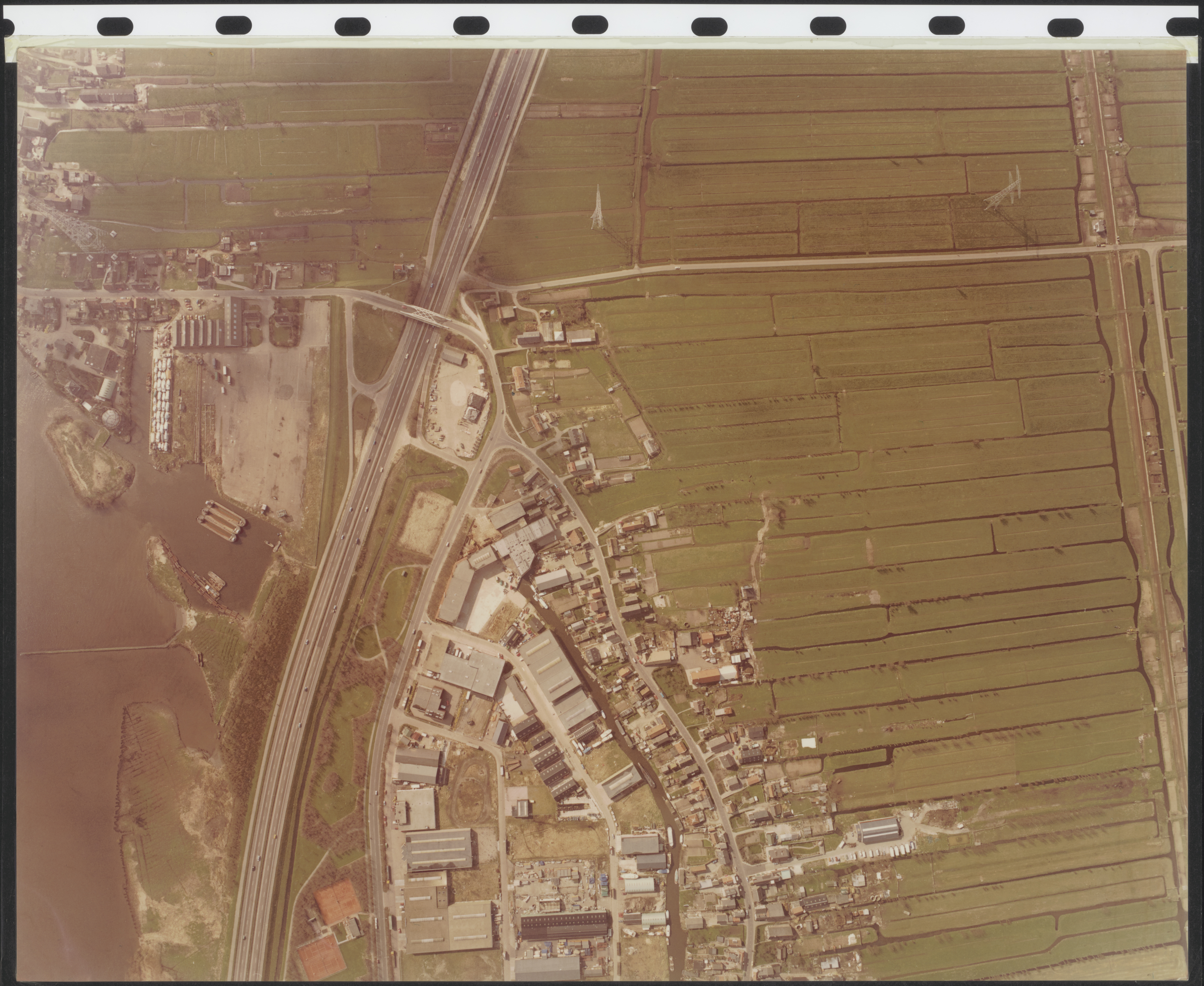 - Luchtfoto van het gebied: A 15 Beneden Merwede Buitendams Karnemelksloot Peulenlaan Rivierdijk Spoorweg Tiendweg