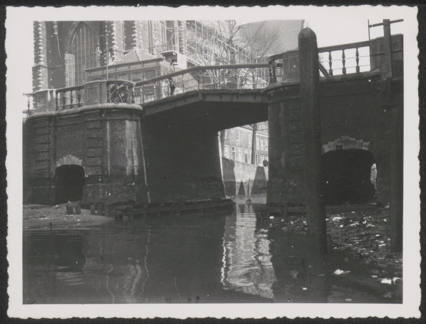 - De Leuvebrug gezien vanaf de Bomhaven richting Grote Kerk.