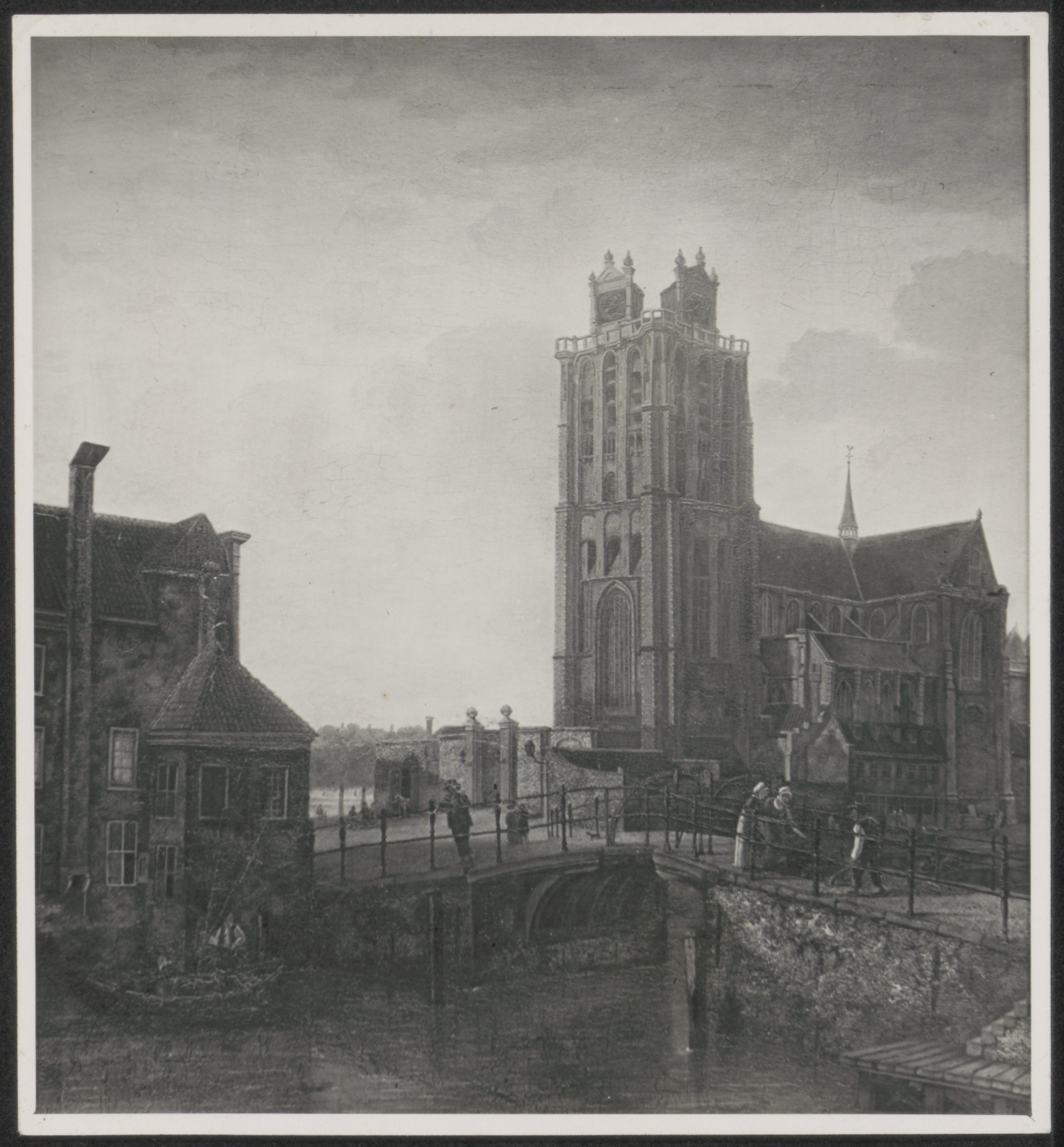 Afbeelding van de Leuvebrug en de Grote Kerk.