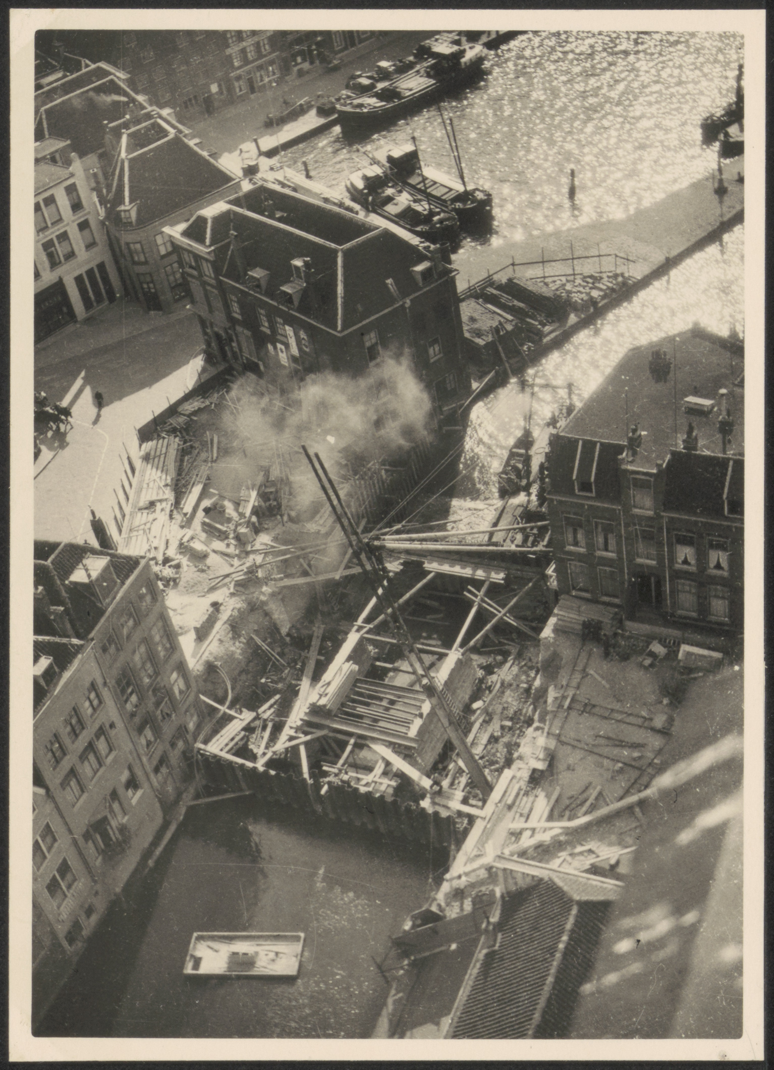 Vernieuwing van de Leuvebrug over de Voorstraatshaven. Rechtsboven de Bomhaven.
