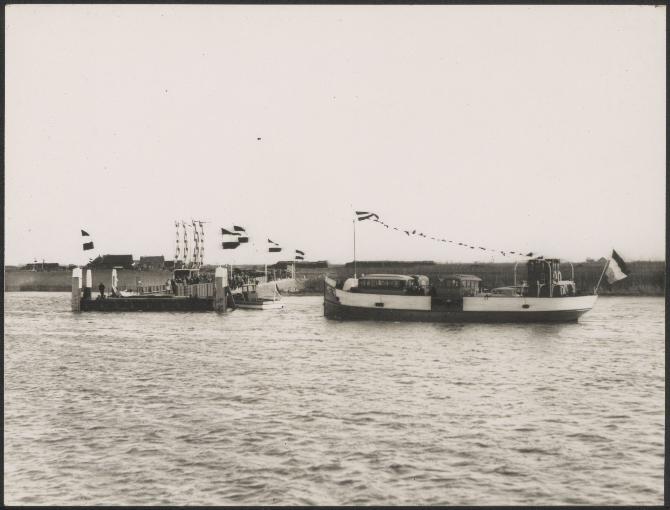 De opening van het veer tussen de Kop van 't land en Werkendam over de Nieuwe Merwede.