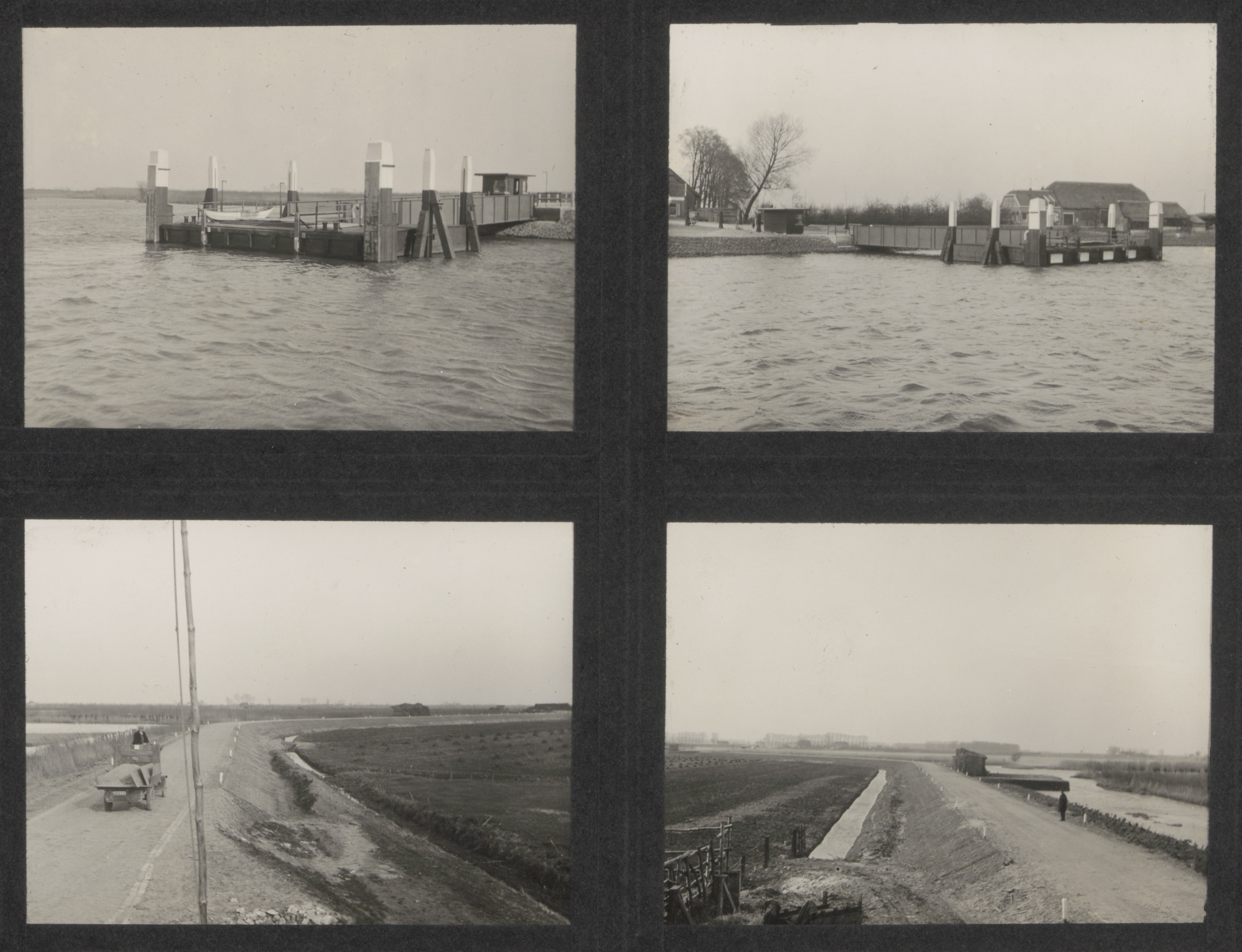 Veersteigers van het veer over de Nieuwe Merwede met de nieuwe en vernieuwde wegen er naartoe. Zo werd aan Brabantse kant een nieuwe veerweg van 450 mtr van het veerhoofd naar de Rivierdijk aangelegd. De opening was op 4 maart 1930.