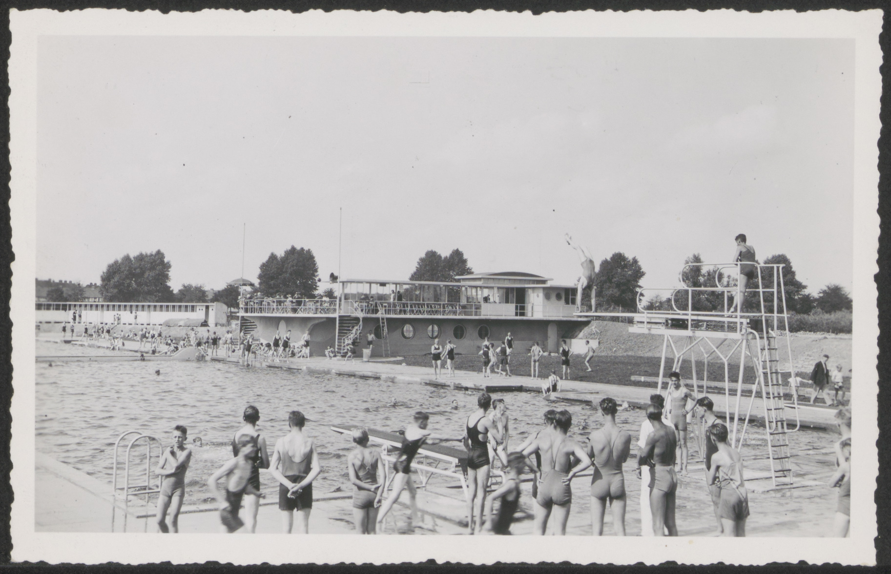 Om zedelijkheidsredenen werd er een scheiding tussen het dames- en herengedeelte gemaakt in de bassins. Om deze reden was het zwembad in een vlindervorm aangelegd. Hier de helft van de vlindervorm: het herengedeelte.